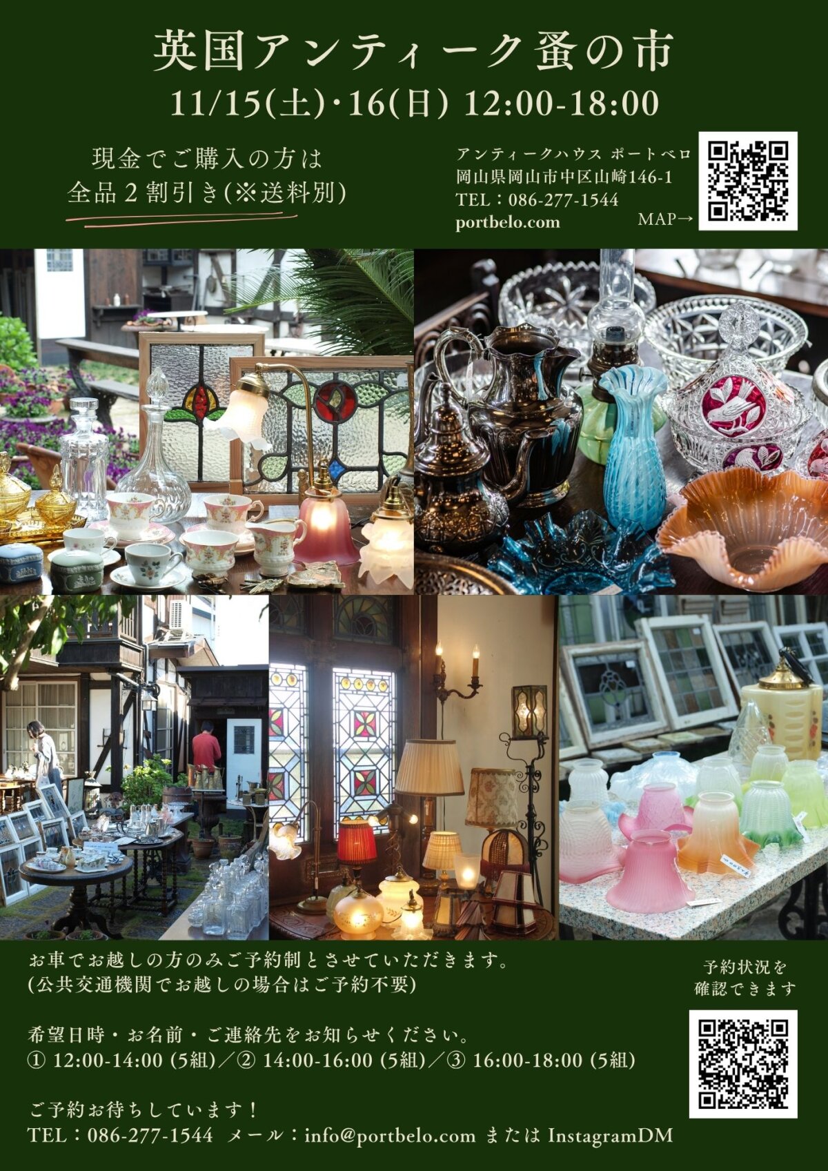 ポートベロのスタッフが英国各地をくまなく見て歩き、質と価格にこだわって仕入れた掘り出し物のアンティーク商品の数々。ステンドグラス、照明、家具、雑貨など、一万点の豊富な品揃えの中からお気に入りの一品を見つけて下さい。
