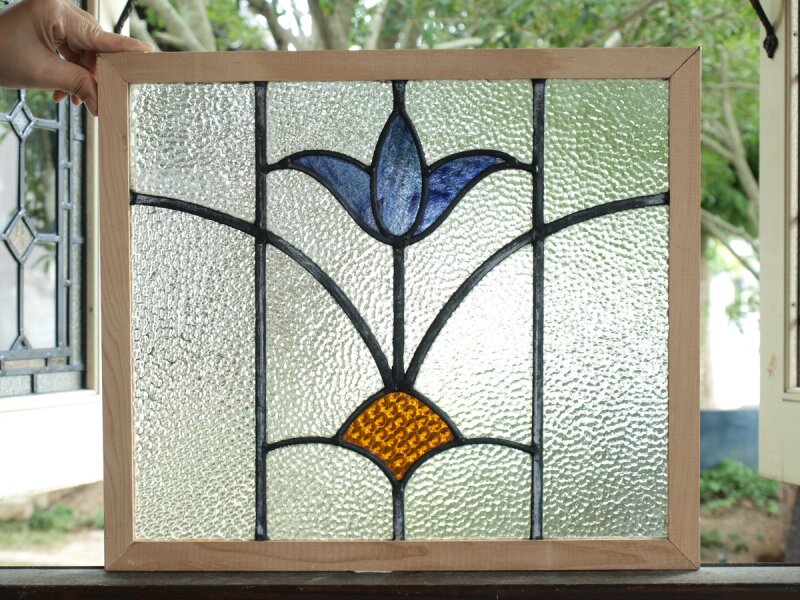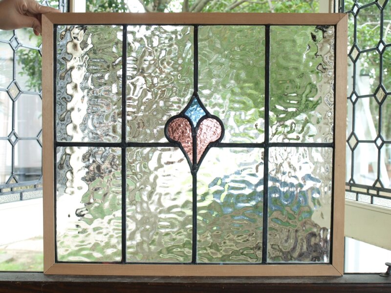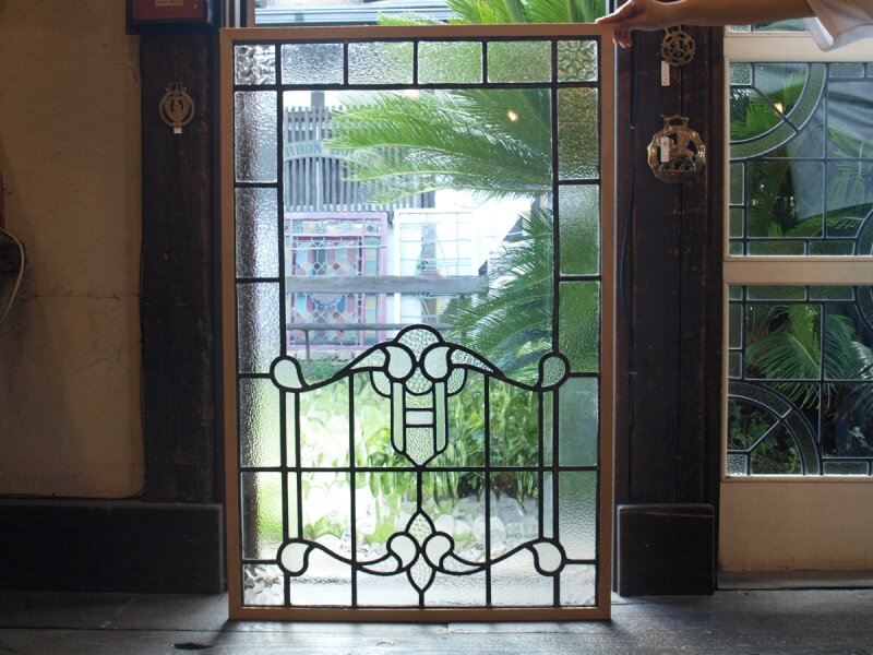 当店では良質のアンティークステンドグラスを取り揃えています。在庫数は1500。、花柄、バラ柄、無色、絵付けなどデザインも豊富です。