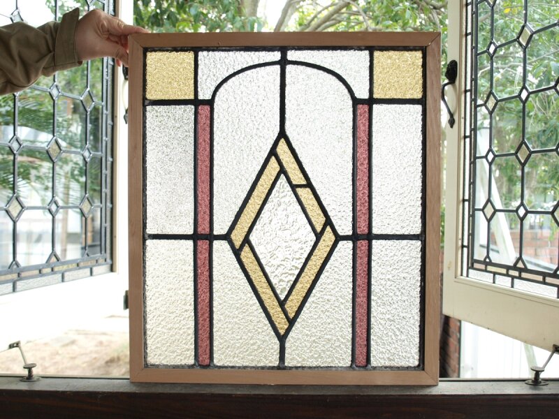 ガラスのシワや気泡、経年による細かな表面キズ、薄いガラスの剥がれ(チップ)、ケーム(鉛線)の色落ち、木枠の欠けや塗装の剥げ等については、アンティークならではの味わいとして現状のまま販売しておりますので、予めご了承ください。
