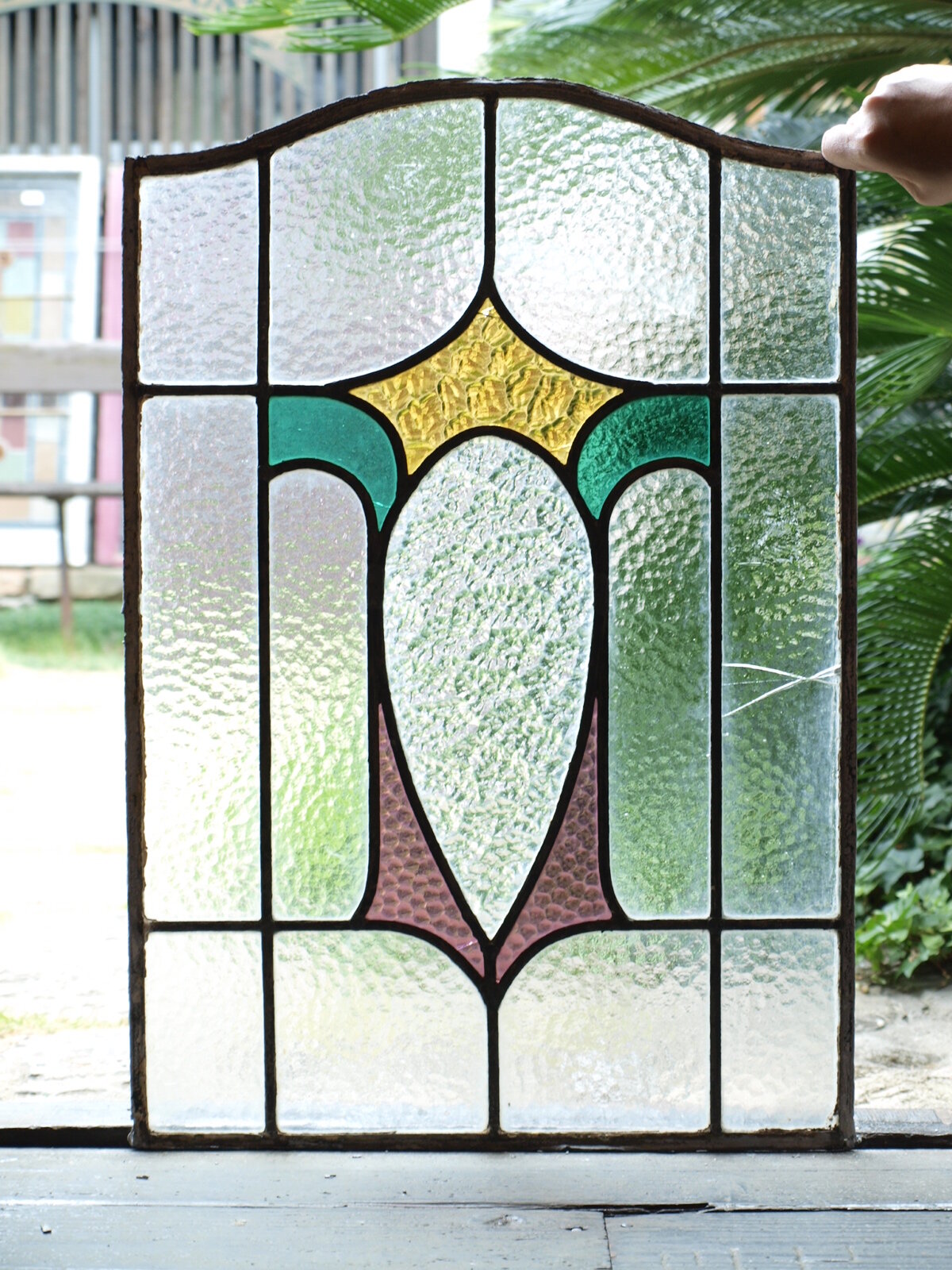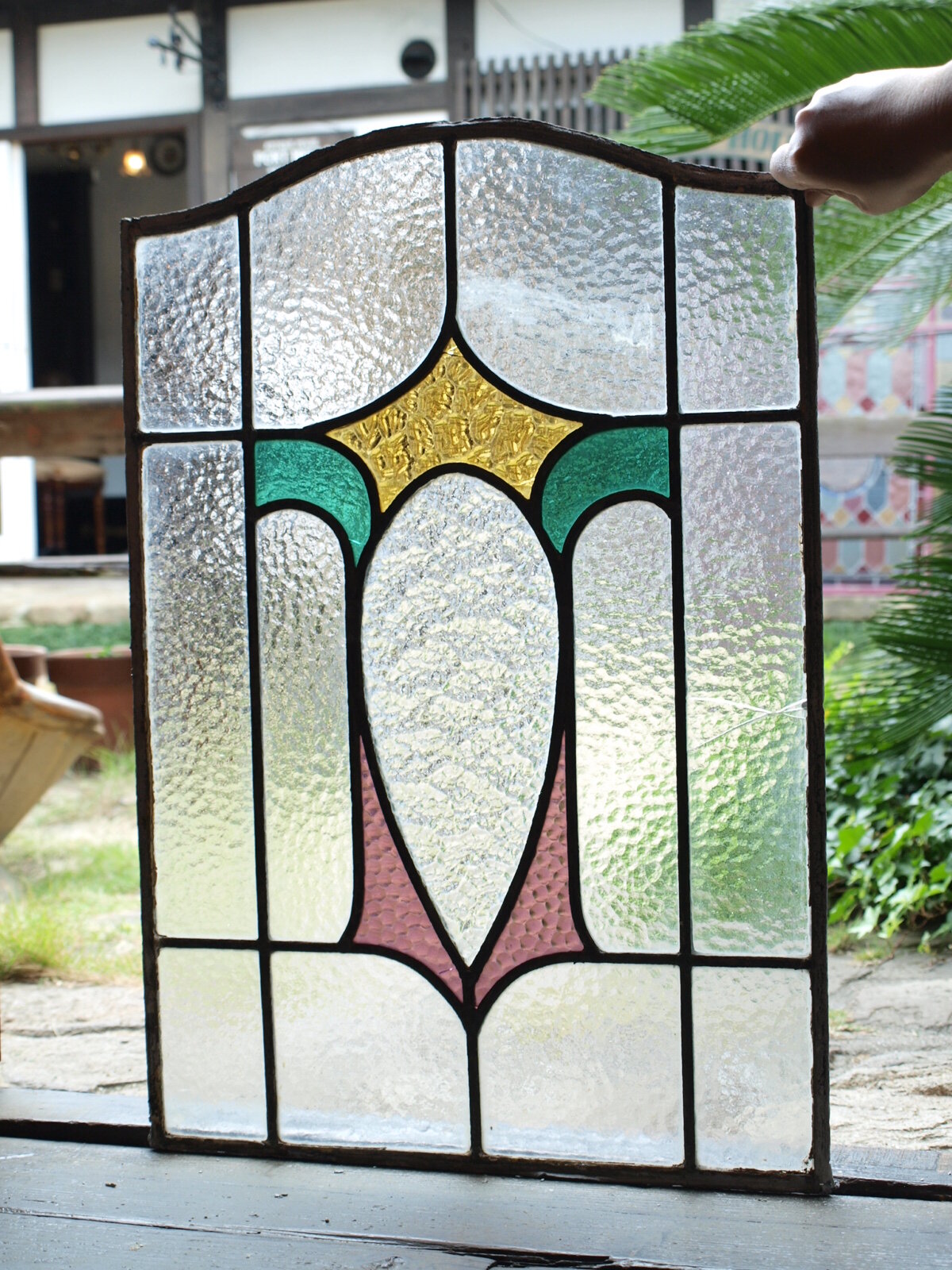ガラスのシワや気泡、経年による細かな表面キズ、薄いガラスの剥がれ(チップ)、ケーム(鉛線)の色落ち、木枠の欠けや塗装の剥げ等については、アンティークならではの味わいとして現状のまま販売しておりますので、予めご了承ください。