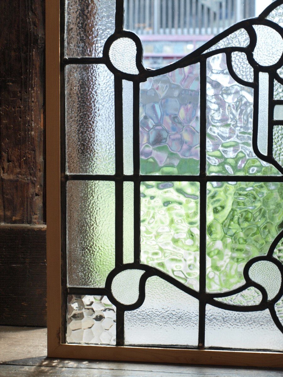 ガラスのシワや気泡、経年による細かな表面キズ、薄いガラスの剥がれ(チップ)、ケーム(鉛線)の色落ち、木枠の欠けや塗装の剥げ等については、アンティークならではの味わいとして現状のまま販売しておりますので、予めご了承ください。
