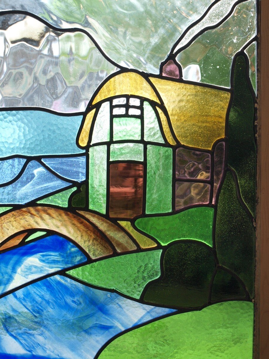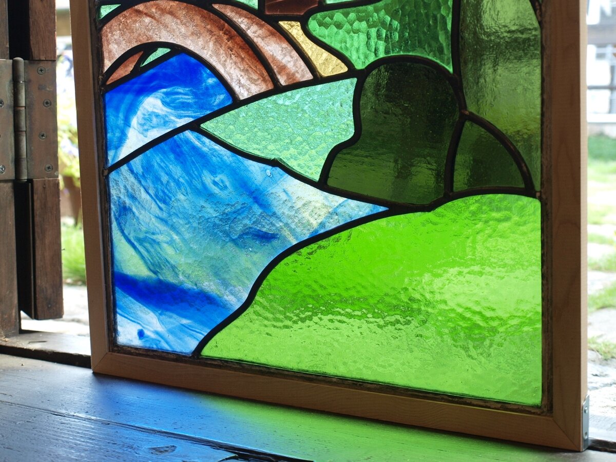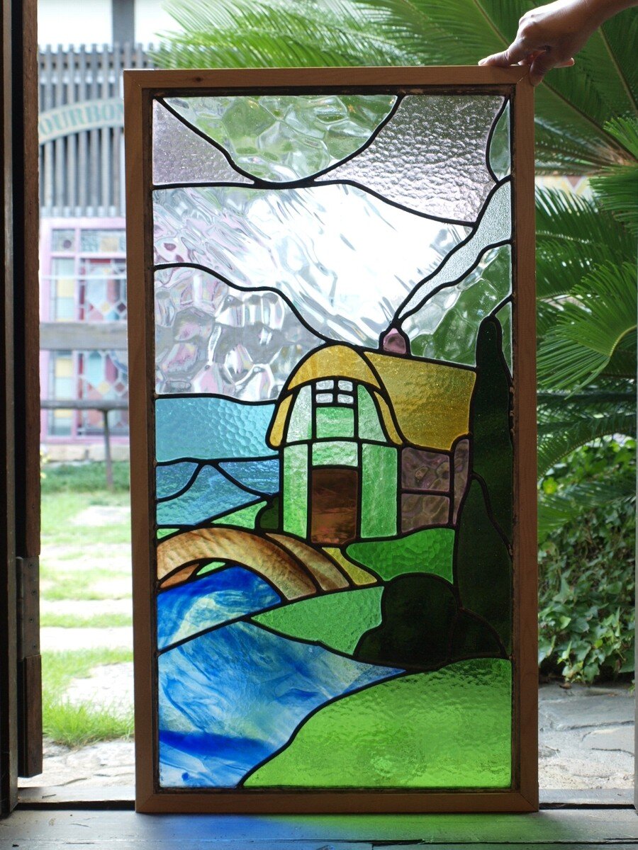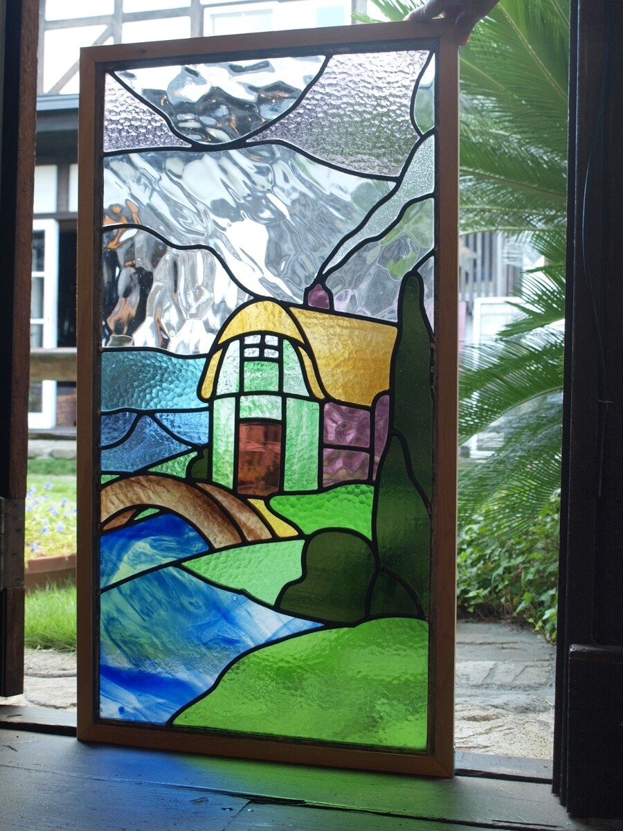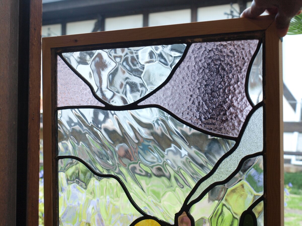 ガラスのシワや気泡、経年による細かな表面キズ、薄いガラスの剥がれ(チップ)、ケーム(鉛線)の色落ち、木枠の欠けや塗装の剥げ等については、アンティークならではの味わいとして現状のまま販売しておりますので、予めご了承ください。