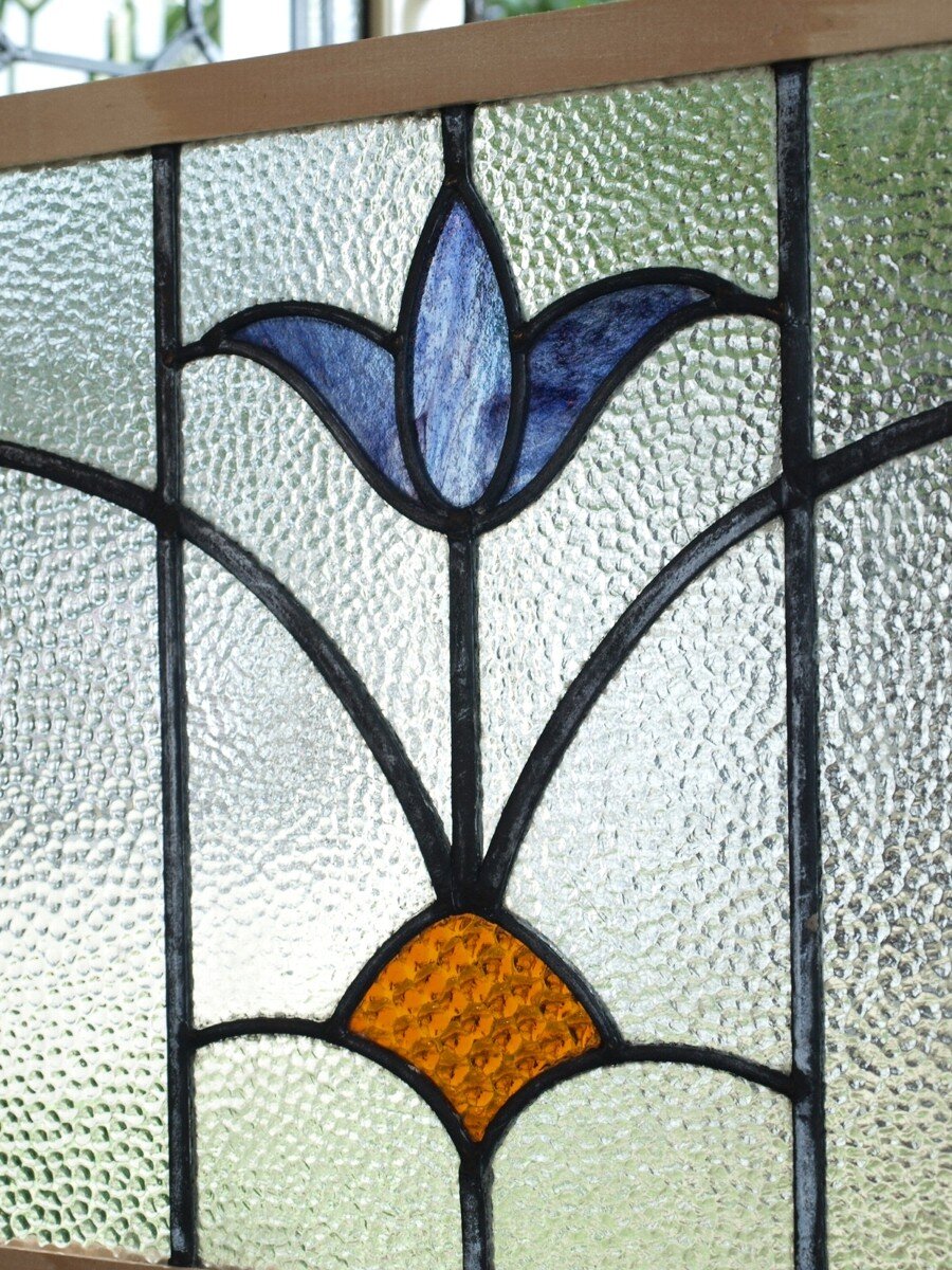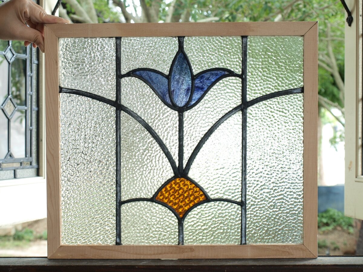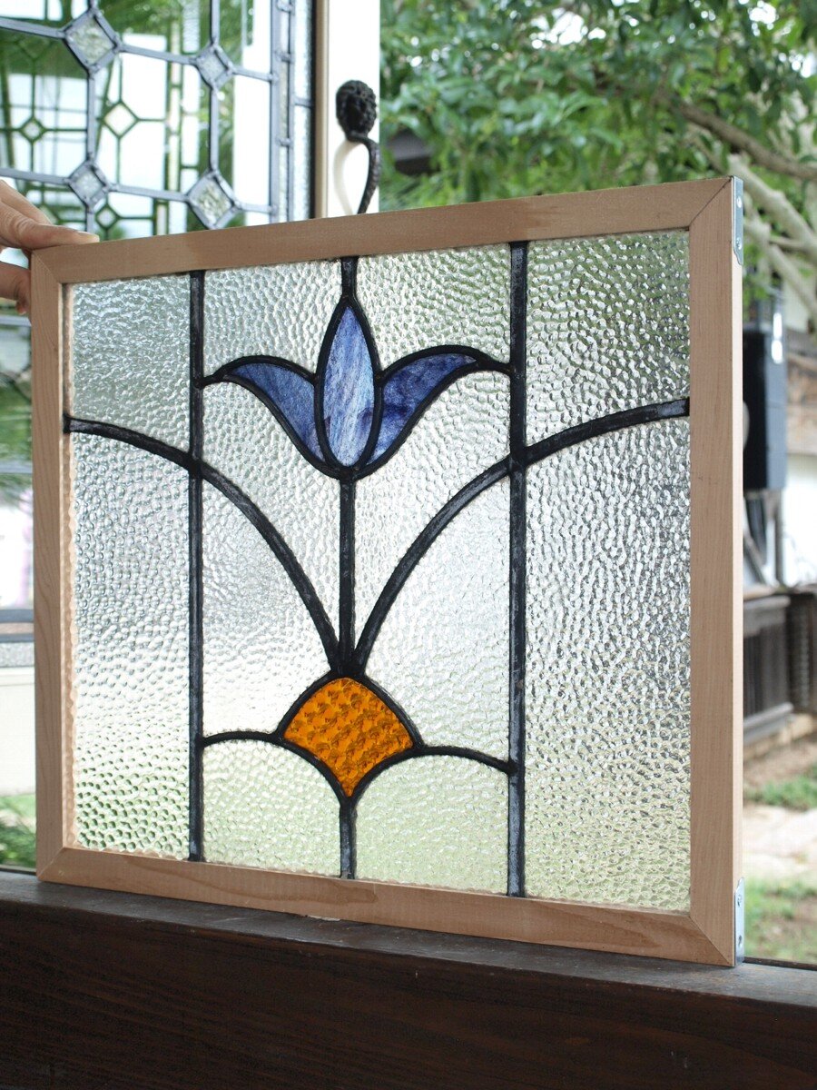 ガラスのシワや気泡、経年による細かな表面キズ、薄いガラスの剥がれ(チップ)、ケーム(鉛線)の色落ち、木枠の欠けや塗装の剥げ等については、アンティークならではの味わいとして現状のまま販売しておりますので、予めご了承ください。