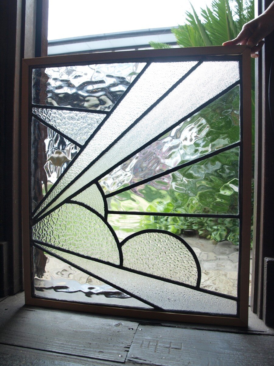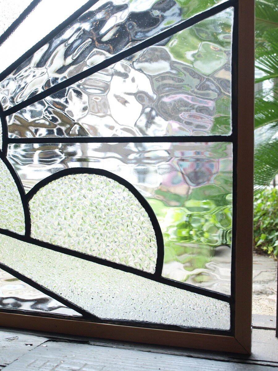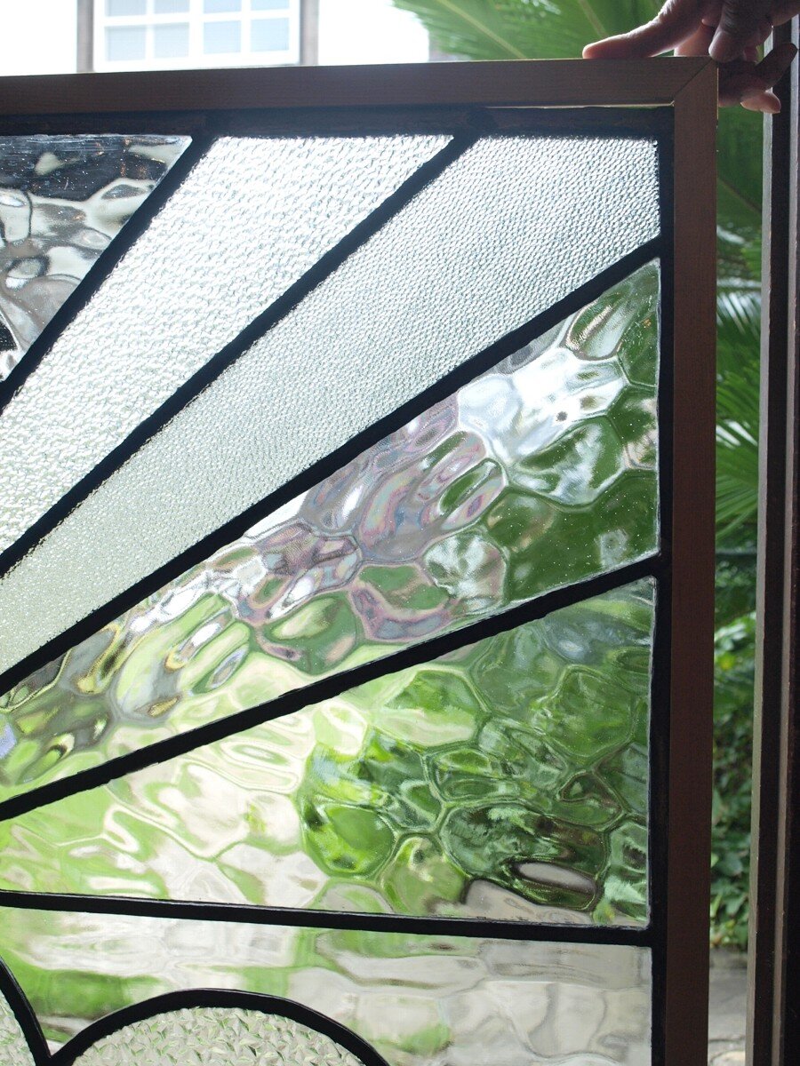 ガラスのシワや気泡、経年による細かな表面キズ、薄いガラスの剥がれ(チップ)、ケーム(鉛線)の色落ち、木枠の欠けや塗装の剥げ等については、アンティークならではの味わいとして現状のまま販売しておりますので、予めご了承ください。