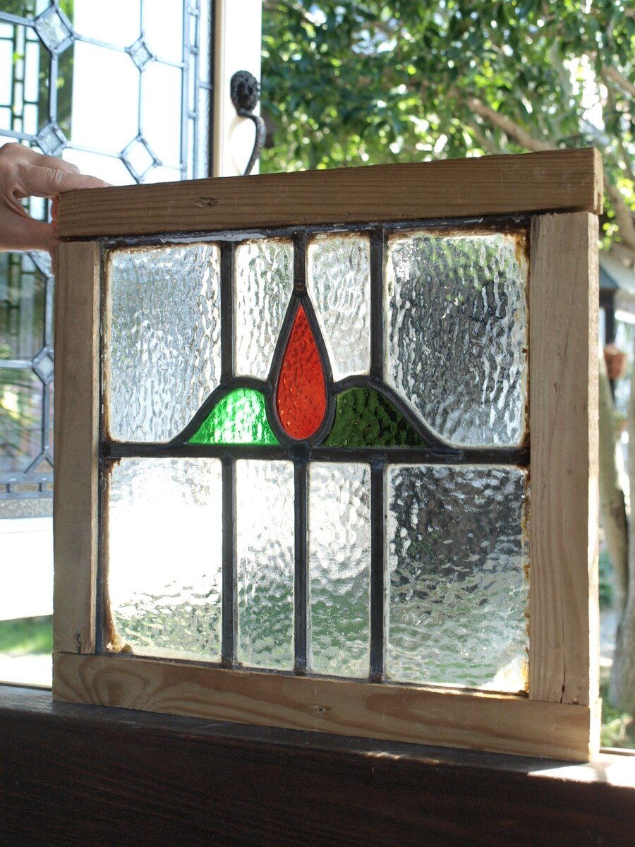 ガラスのシワや気泡、経年による細かな表面キズ、薄いガラスの剥がれ(チップ)、ケーム(鉛線)の色落ち、木枠の欠けや塗装の剥げ等については、アンティークならではの味わいとして現状のまま販売しておりますので、予めご了承ください。