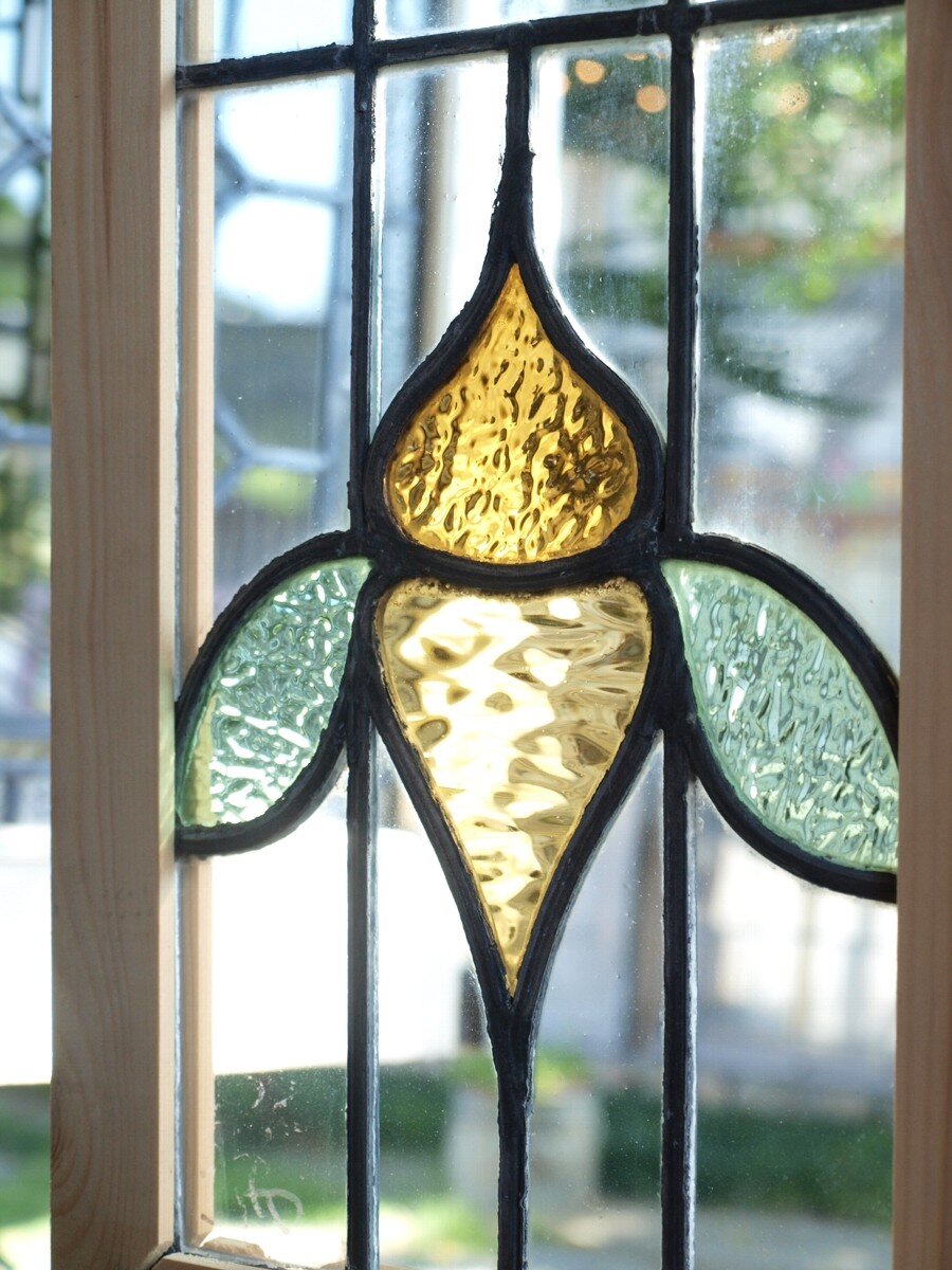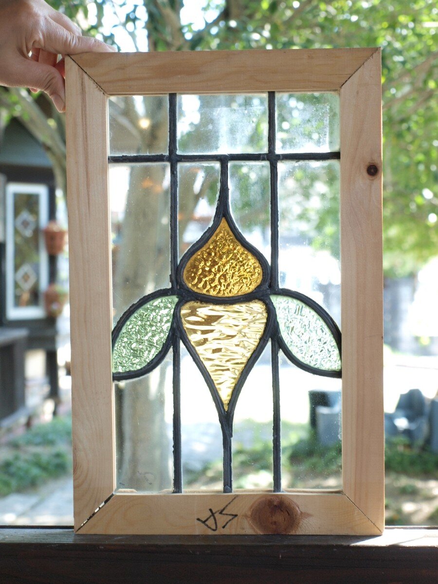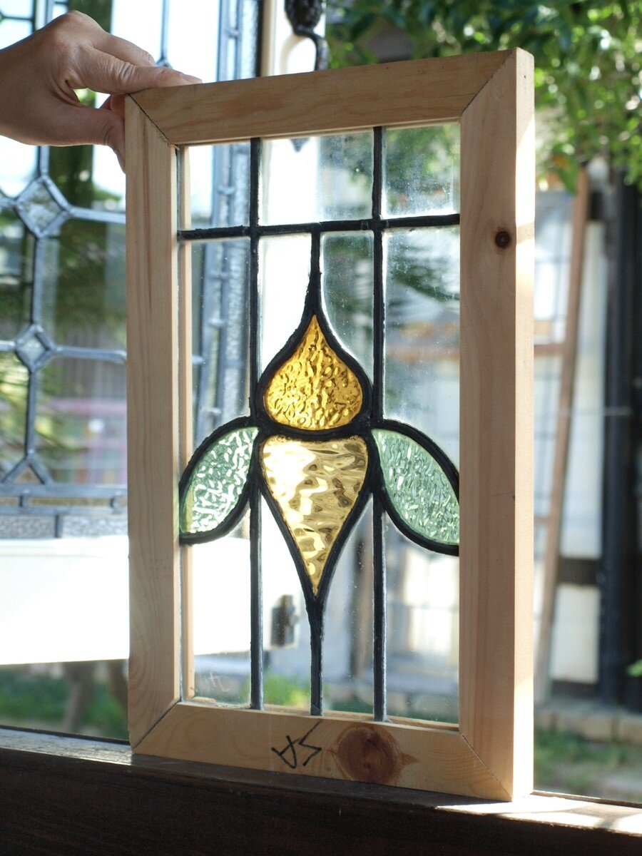 ガラスのシワや気泡、経年による細かな表面キズ、薄いガラスの剥がれ(チップ)、ケーム(鉛線)の色落ち、木枠の欠けや塗装の剥げ等については、アンティークならではの味わいとして現状のまま販売しておりますので、予めご了承ください。