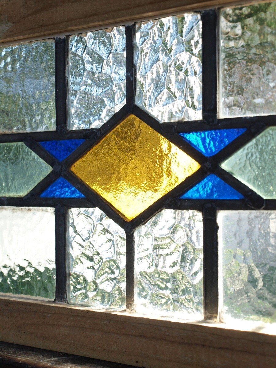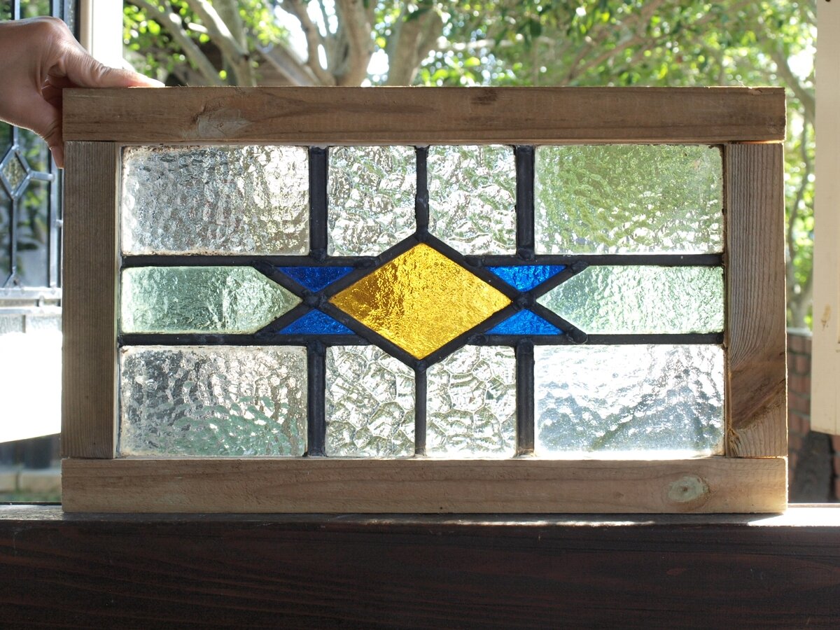 ガラスのシワや気泡、経年による細かな表面キズ、薄いガラスの剥がれ(チップ)、ケーム(鉛線)の色落ち、木枠の欠けや塗装の剥げ等については、アンティークならではの味わいとして現状のまま販売しておりますので、予めご了承ください。