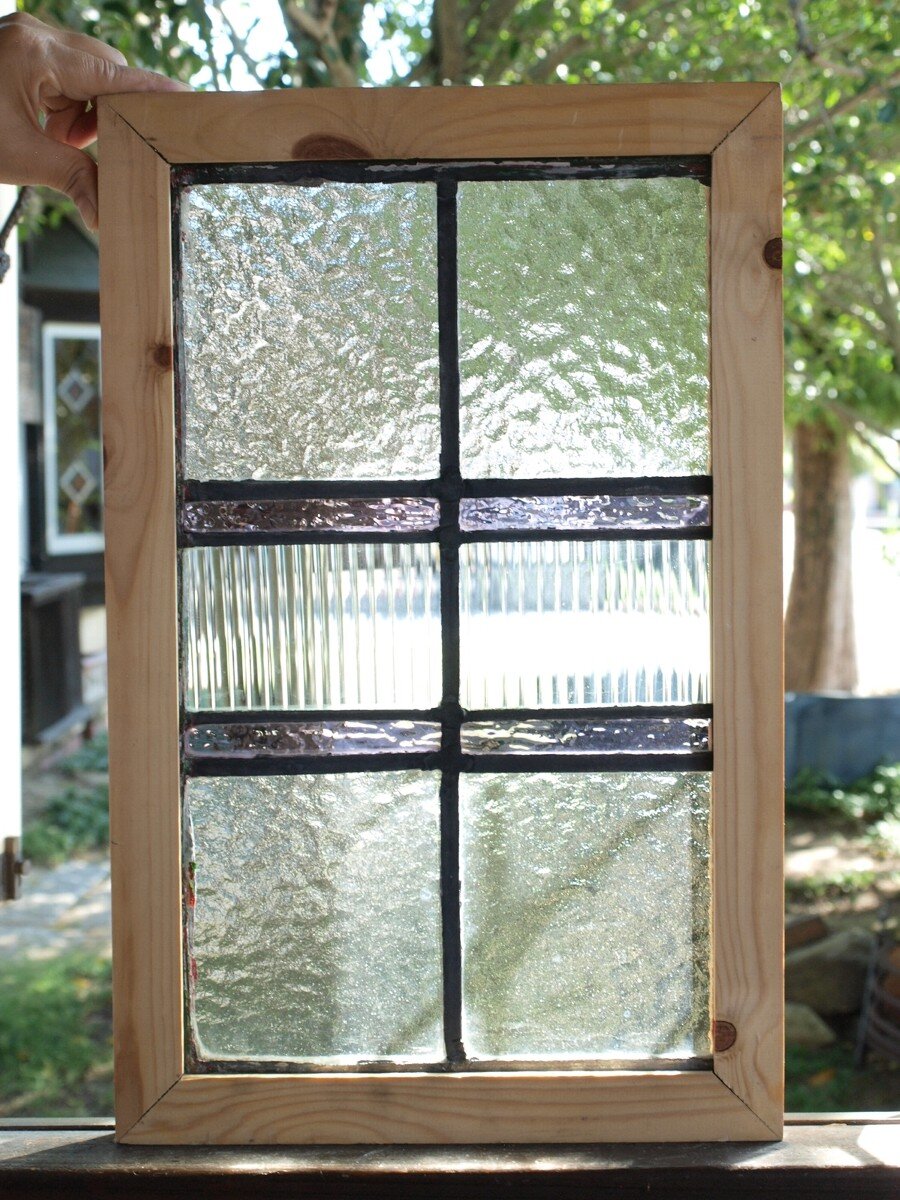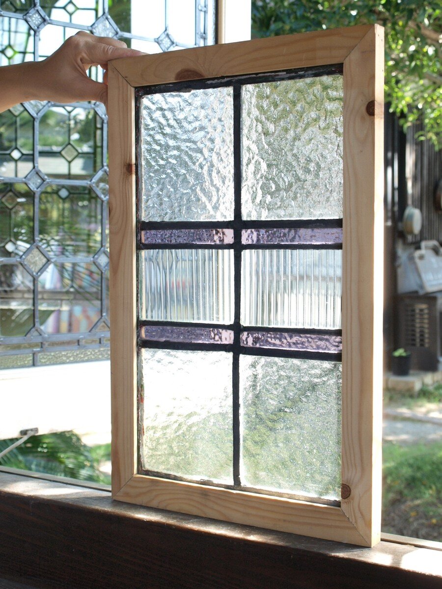 ガラスのシワや気泡、経年による細かな表面キズ、薄いガラスの剥がれ(チップ)、ケーム(鉛線)の色落ち、木枠の欠けや塗装の剥げ等については、アンティークならではの味わいとして現状のまま販売しておりますので、予めご了承ください。