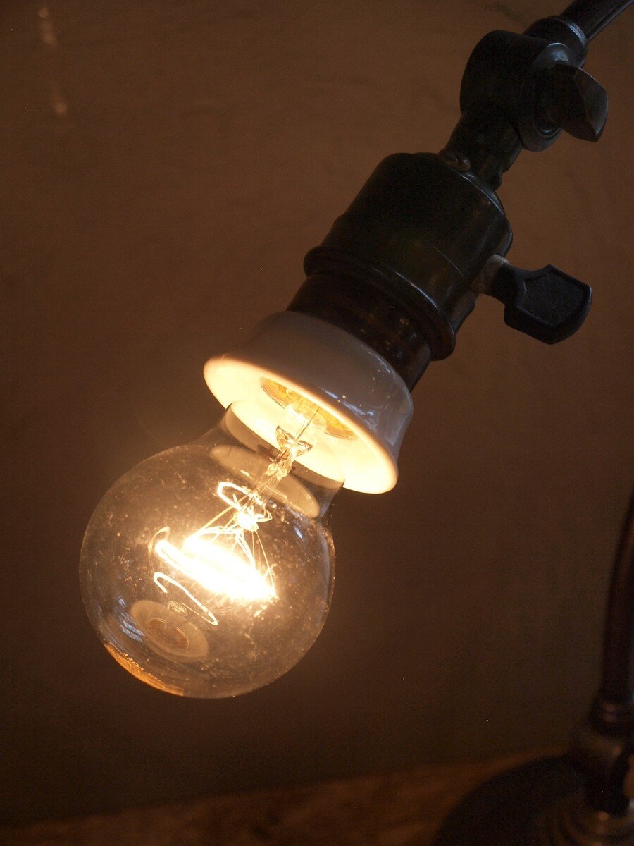 ■電球は出来る限り日本の電球をつけておりますが、ソケット変更等が出来ない場合はイギリス電球をつけています。イギリスの電球は当店か照明の専門店でお求めいただけます。