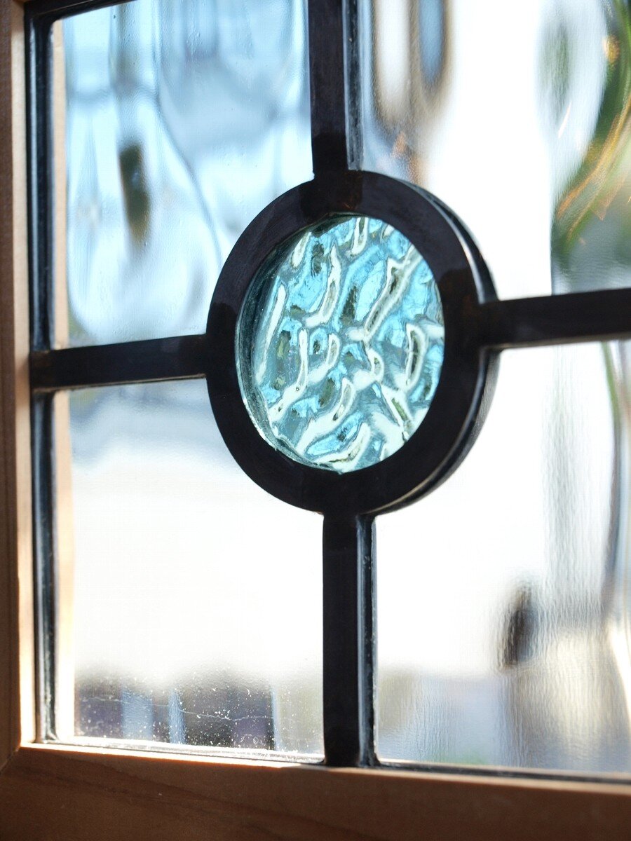 ガラスのシワや気泡、経年による細かな表面キズ、薄いガラスの剥がれ(チップ)、ケーム(鉛線)の色落ち、木枠の欠けや塗装の剥げ等については、アンティークならではの味わいとして現状のまま販売しておりますので、予めご了承ください。