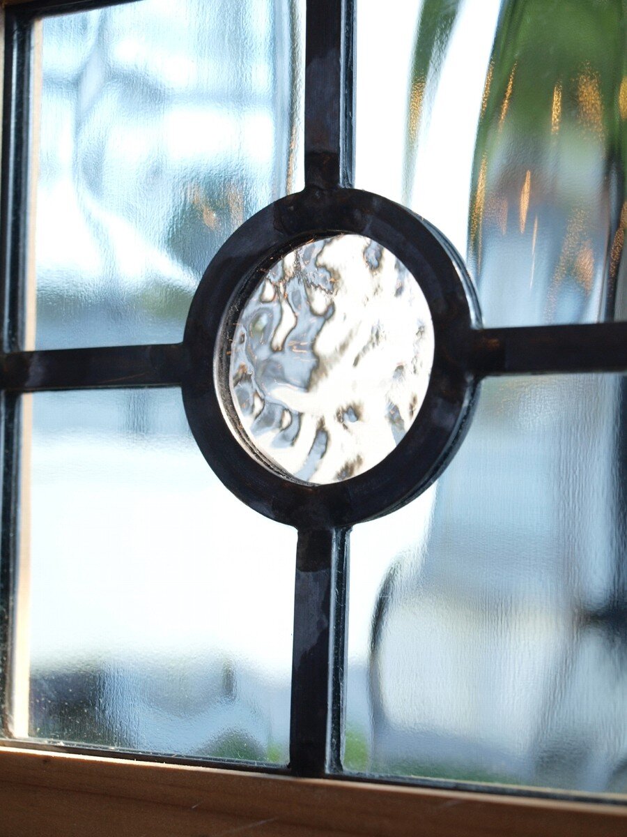 ガラスのシワや気泡、経年による細かな表面キズ、薄いガラスの剥がれ(チップ)、ケーム(鉛線)の色落ち、木枠の欠けや塗装の剥げ等については、アンティークならではの味わいとして現状のまま販売しておりますので、予めご了承ください。