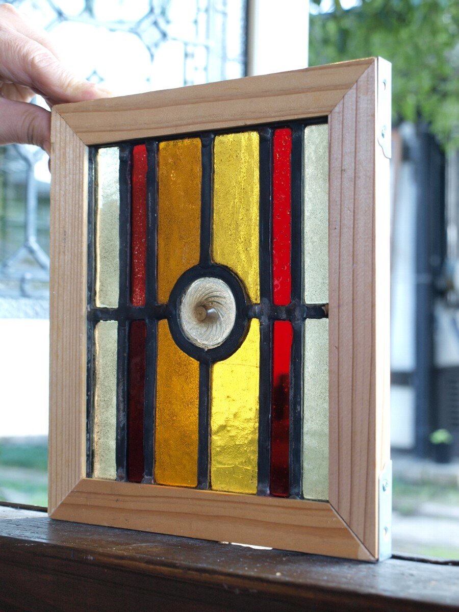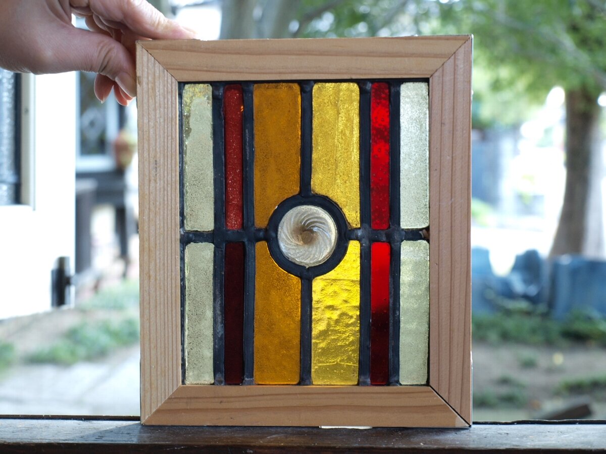 ガラスのシワや気泡、経年による細かな表面キズ、薄いガラスの剥がれ(チップ)、ケーム(鉛線)の色落ち、木枠の欠けや塗装の剥げ等については、アンティークならではの味わいとして現状のまま販売しておりますので、予めご了承ください。