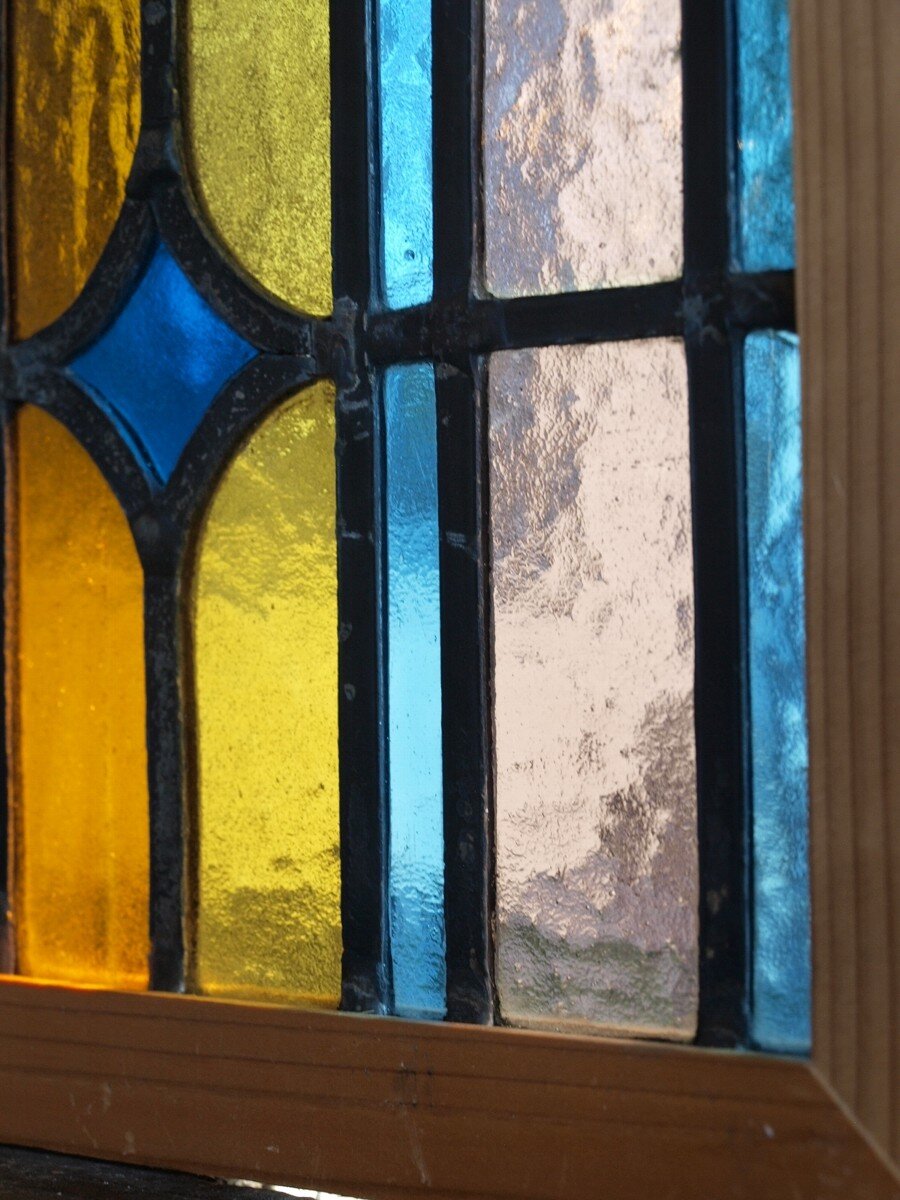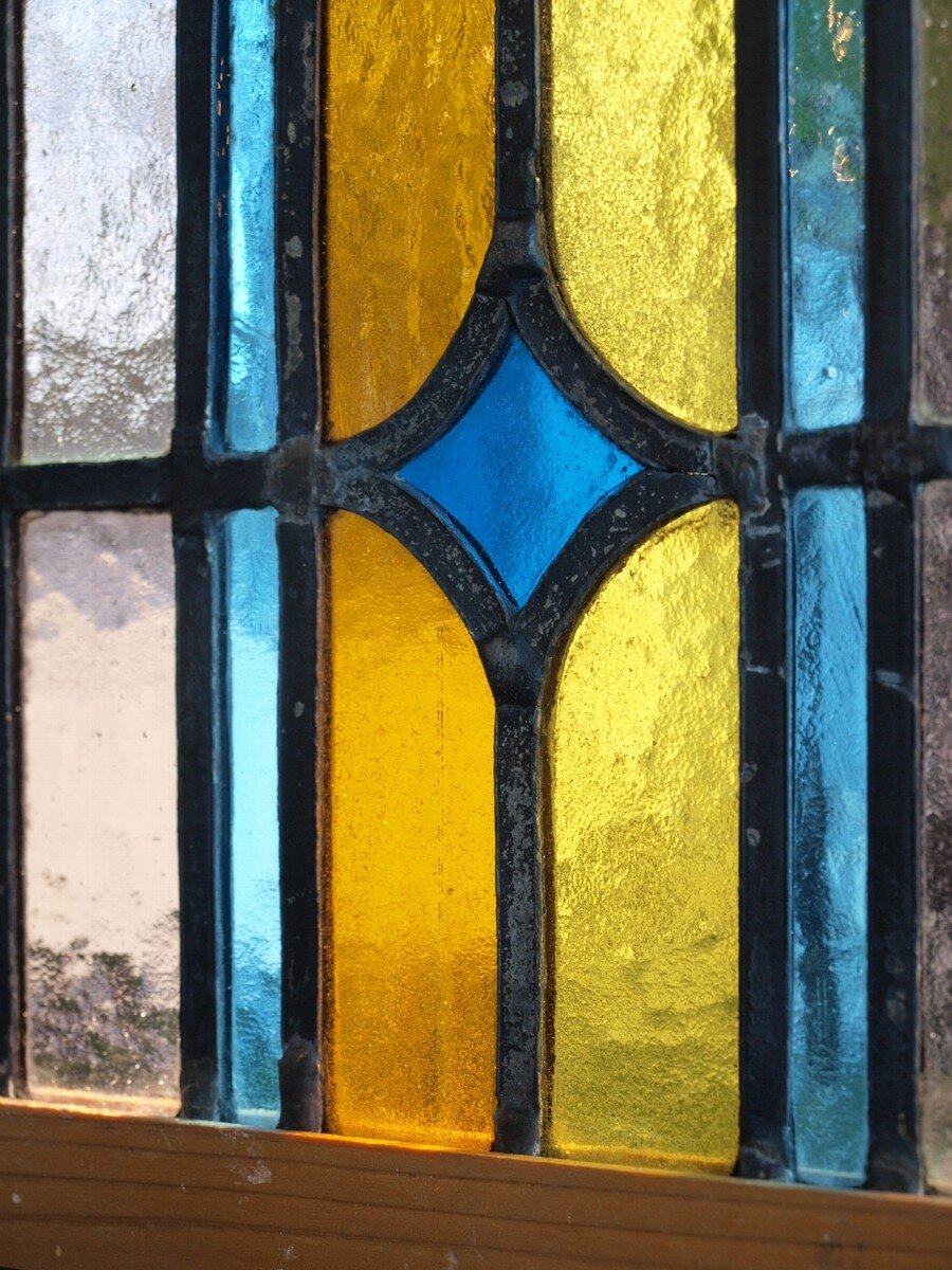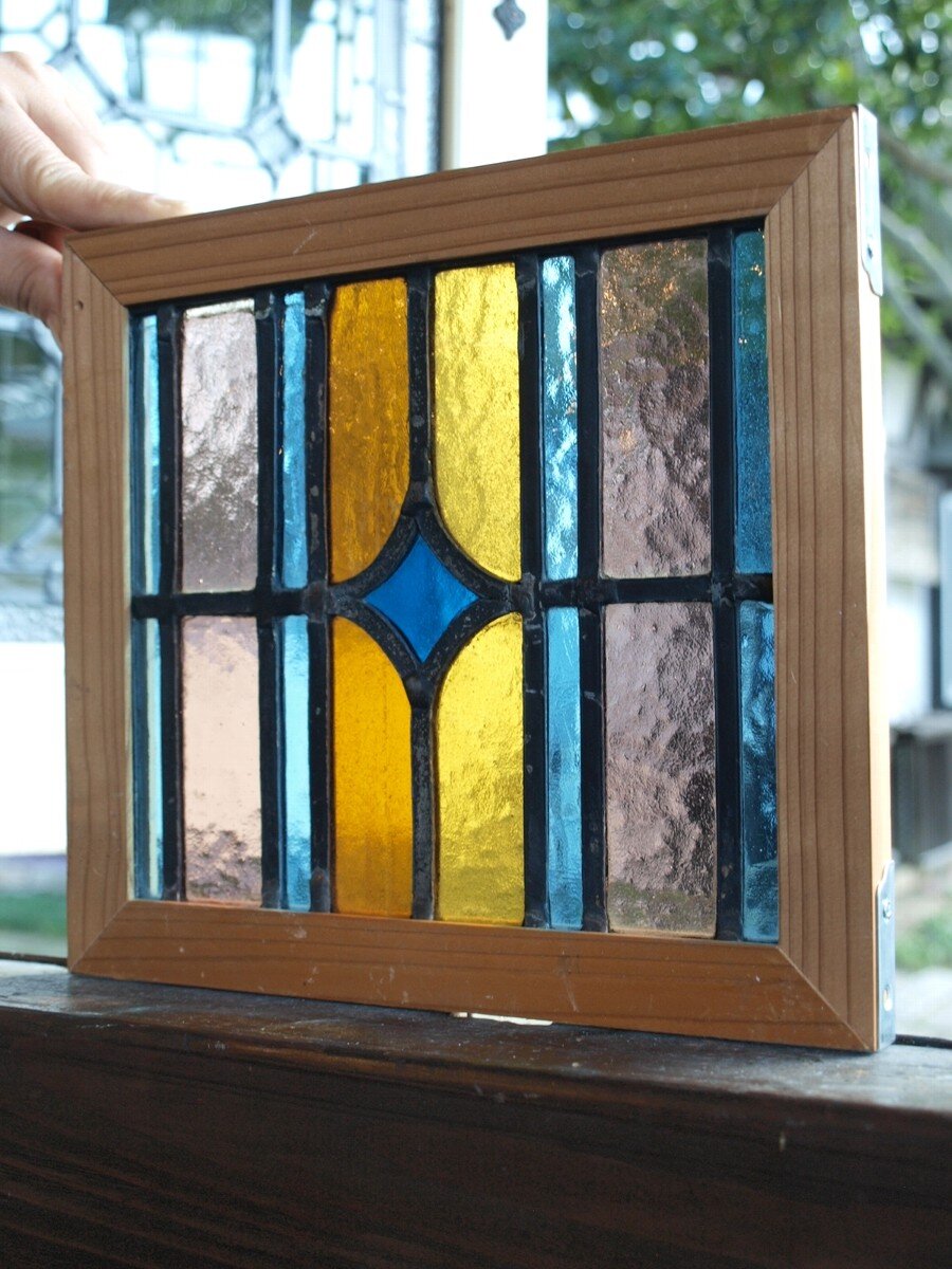 ガラスのシワや気泡、経年による細かな表面キズ、薄いガラスの剥がれ(チップ)、ケーム(鉛線)の色落ち、木枠の欠けや塗装の剥げ等については、アンティークならではの味わいとして現状のまま販売しておりますので、予めご了承ください。