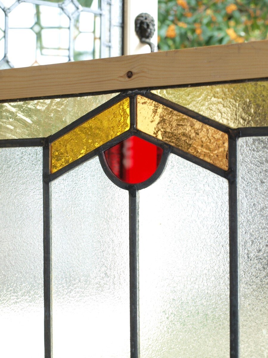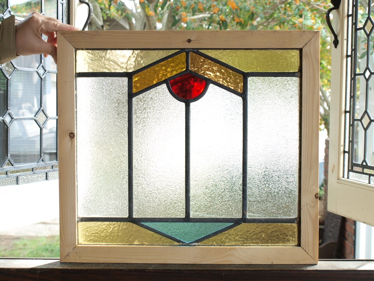 ガラスのシワや気泡、経年による細かな表面キズ、薄いガラスの剥がれ(チップ)、ケーム(鉛線)の色落ち、木枠の欠けや塗装の剥げ等については、アンティークならではの味わいとして現状のまま販売しておりますので、予めご了承ください。