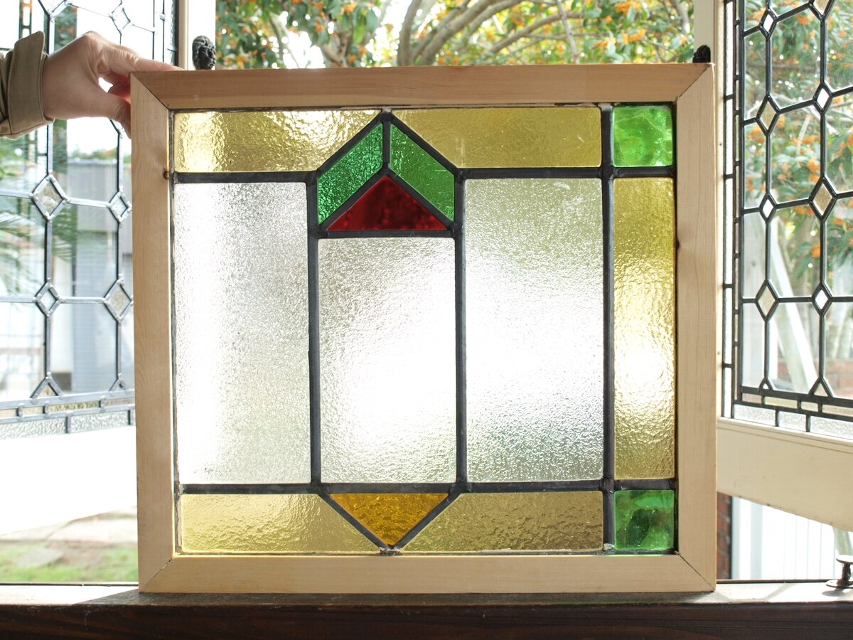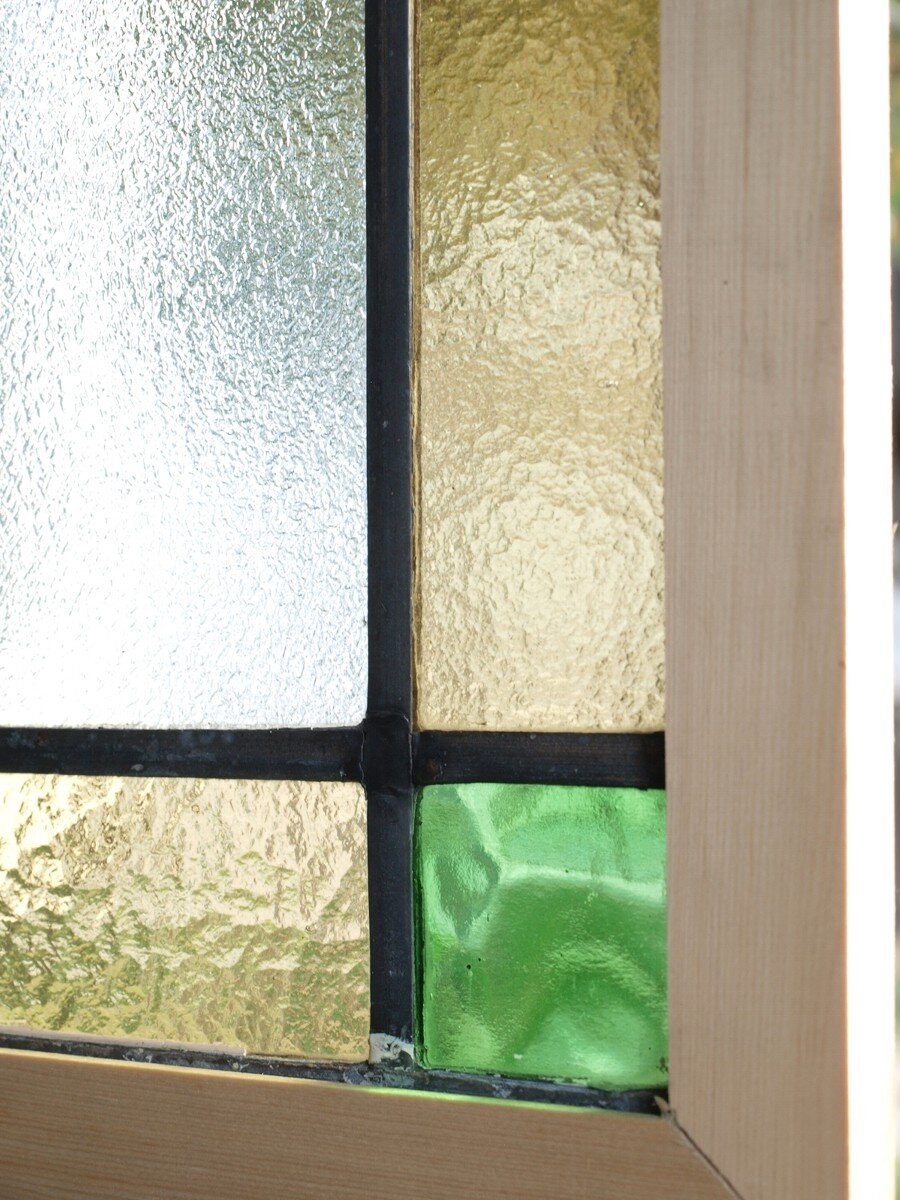 ガラスのシワや気泡、経年による細かな表面キズ、薄いガラスの剥がれ(チップ)、ケーム(鉛線)の色落ち、木枠の欠けや塗装の剥げ等については、アンティークならではの味わいとして現状のまま販売しておりますので、予めご了承ください。