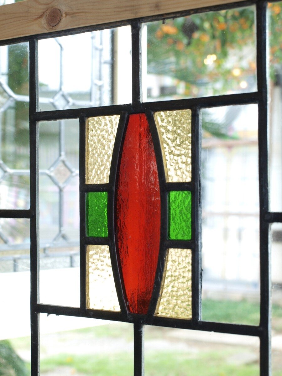 ガラスのシワや気泡、経年による細かな表面キズ、薄いガラスの剥がれ(チップ)、ケーム(鉛線)の色落ち、木枠の欠けや塗装の剥げ等については、アンティークならではの味わいとして現状のまま販売しておりますので、予めご了承ください。