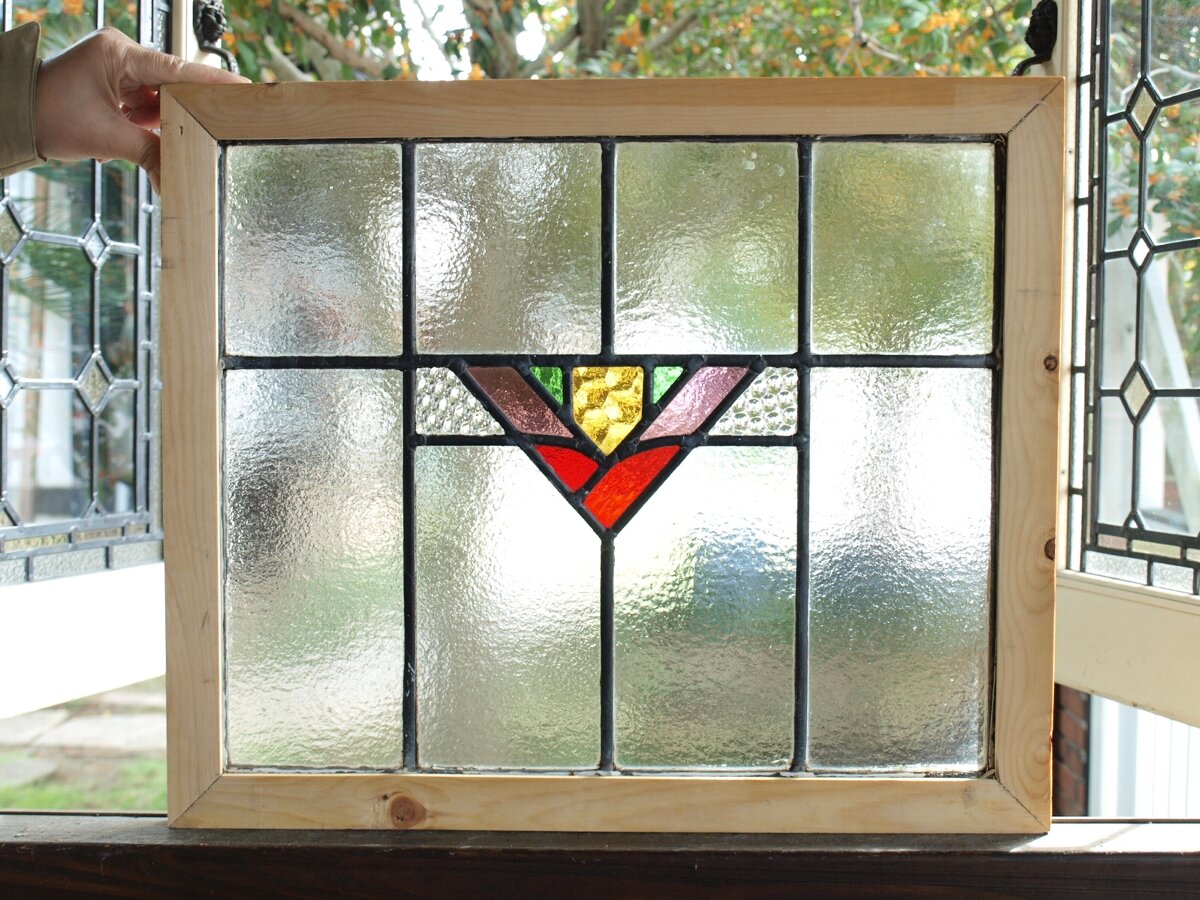 ガラスのシワや気泡、経年による細かな表面キズ、薄いガラスの剥がれ(チップ)、ケーム(鉛線)の色落ち、木枠の欠けや塗装の剥げ等については、アンティークならではの味わいとして現状のまま販売しておりますので、予めご了承ください。