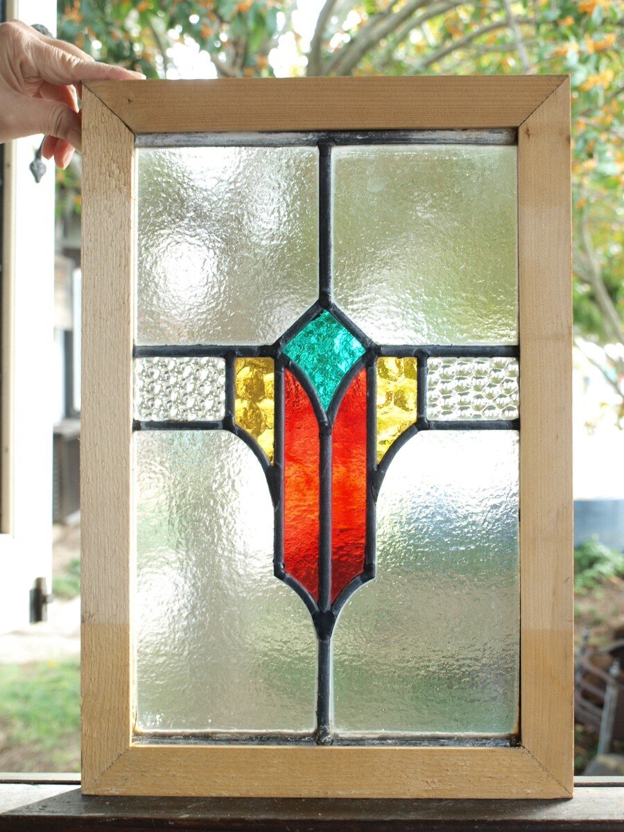 ガラスのシワや気泡、経年による細かな表面キズ、薄いガラスの剥がれ(チップ)、ケーム(鉛線)の色落ち、木枠の欠けや塗装の剥げ等については、アンティークならではの味わいとして現状のまま販売しておりますので、予めご了承ください。