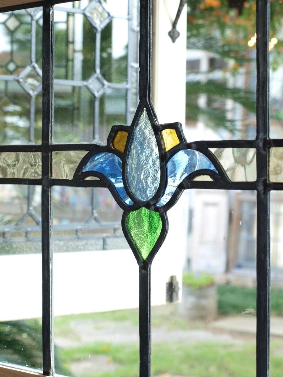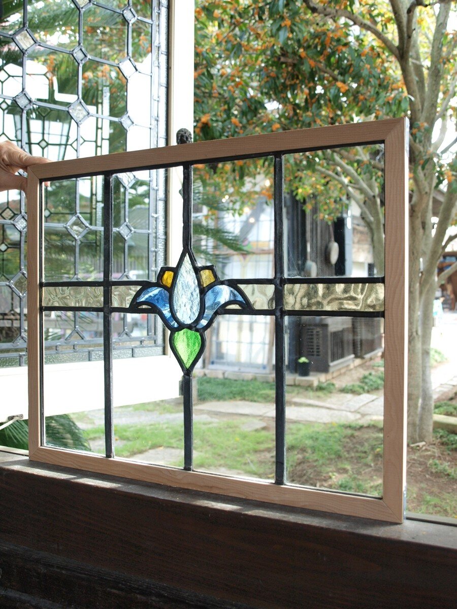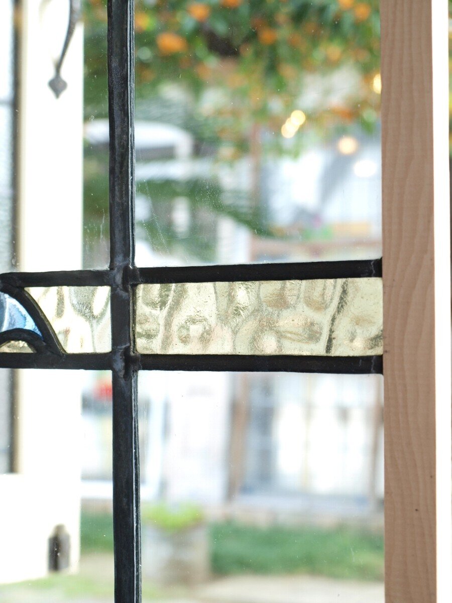ガラスのシワや気泡、経年による細かな表面キズ、薄いガラスの剥がれ(チップ)、ケーム(鉛線)の色落ち、木枠の欠けや塗装の剥げ等については、アンティークならではの味わいとして現状のまま販売しておりますので、予めご了承ください。