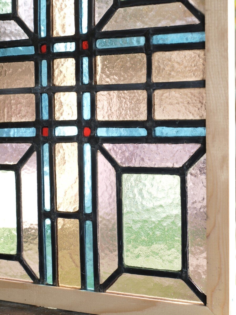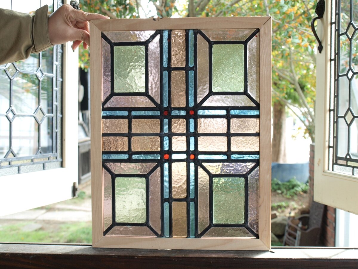 ガラスのシワや気泡、経年による細かな表面キズ、薄いガラスの剥がれ(チップ)、ケーム(鉛線)の色落ち、木枠の欠けや塗装の剥げ等については、アンティークならではの味わいとして現状のまま販売しておりますので、予めご了承ください。
