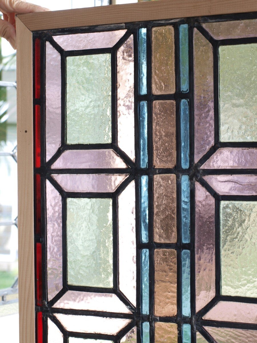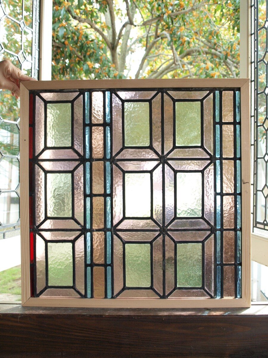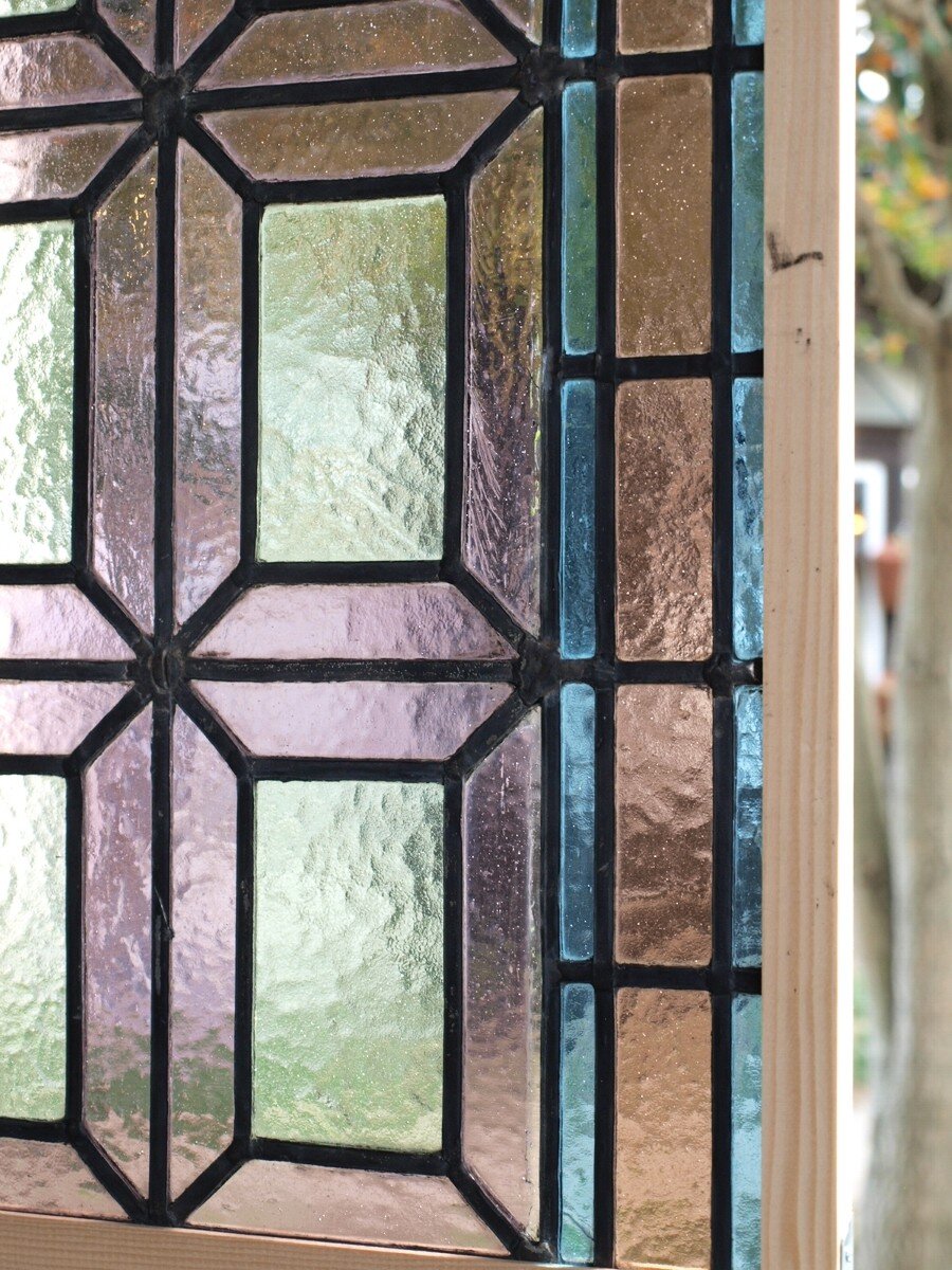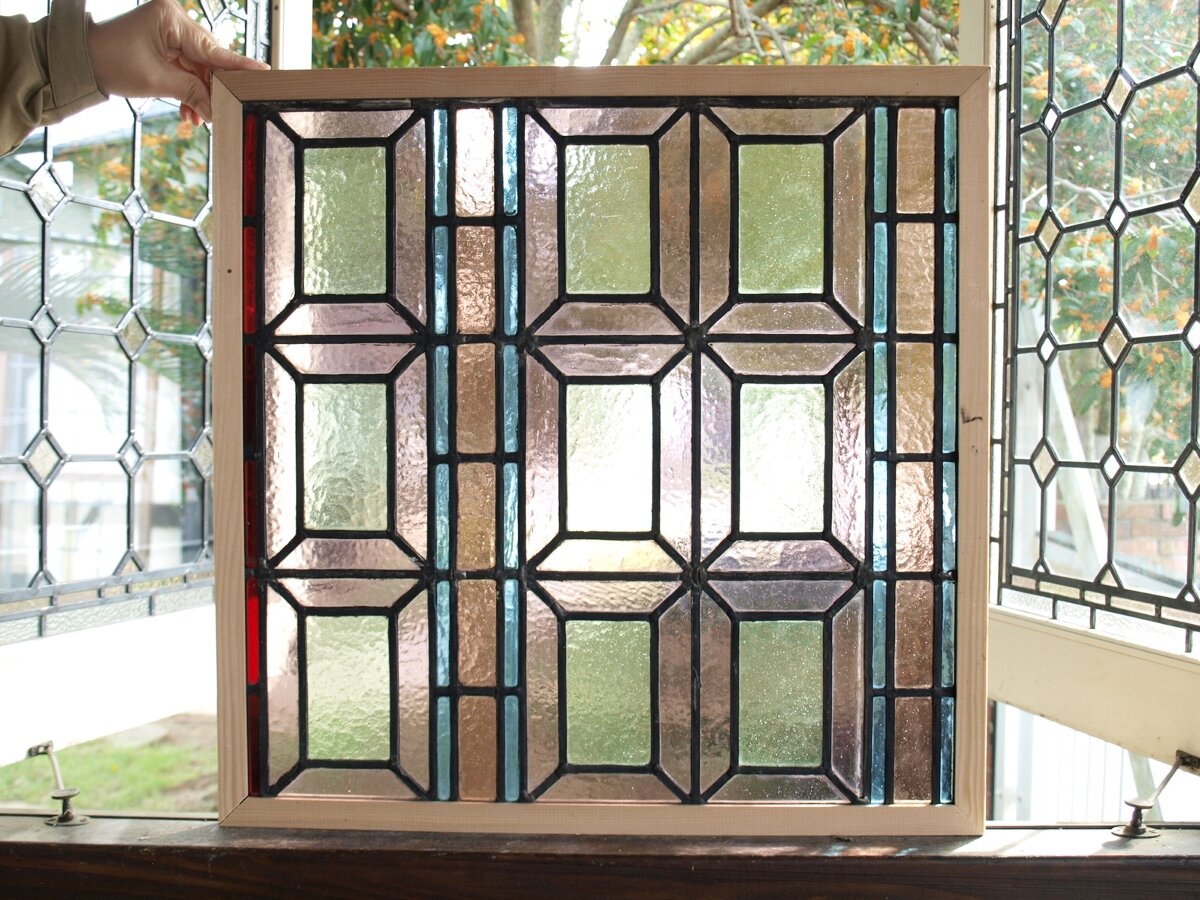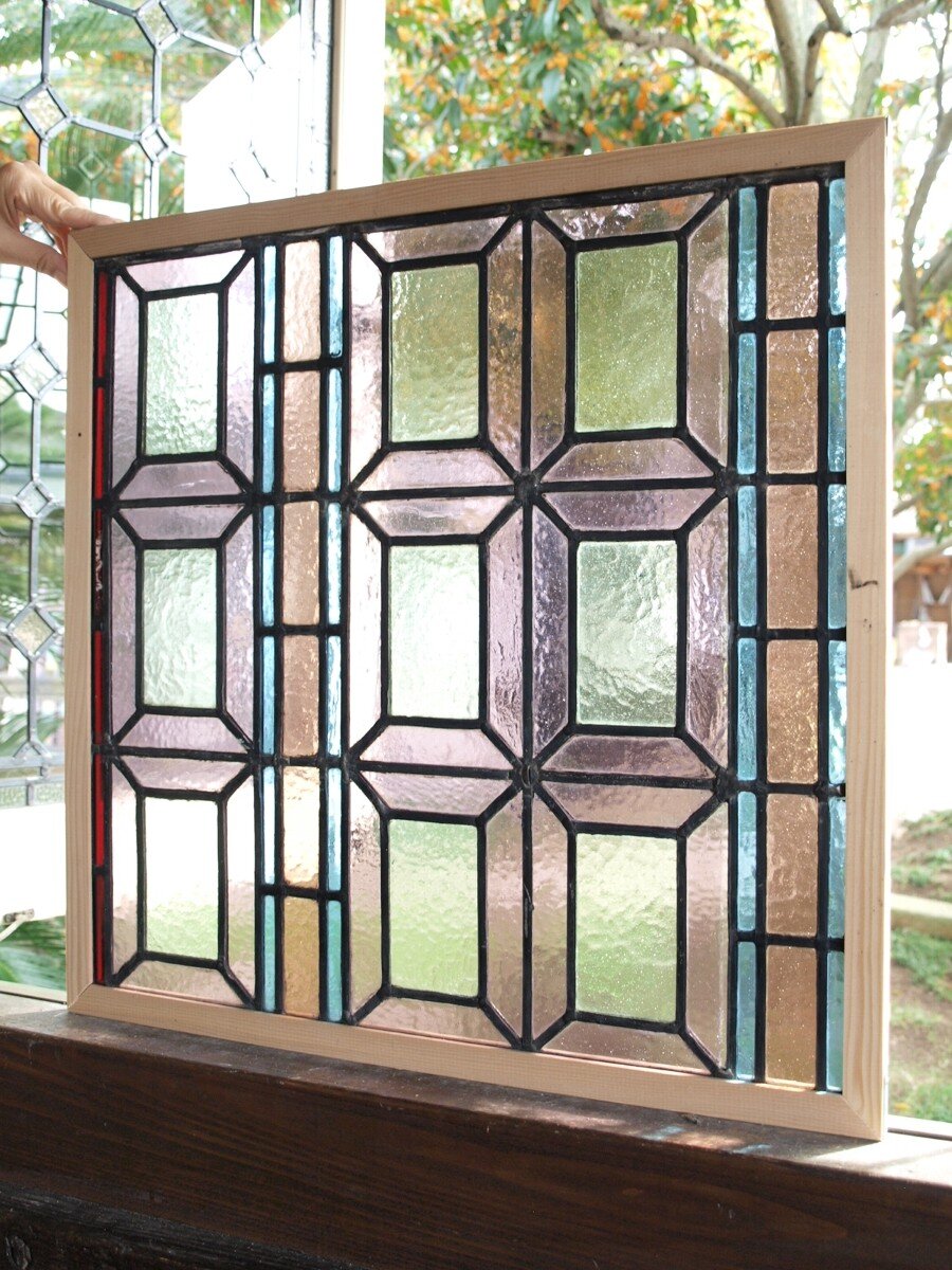 ガラスのシワや気泡、経年による細かな表面キズ、薄いガラスの剥がれ(チップ)、ケーム(鉛線)の色落ち、木枠の欠けや塗装の剥げ等については、アンティークならではの味わいとして現状のまま販売しておりますので、予めご了承ください。