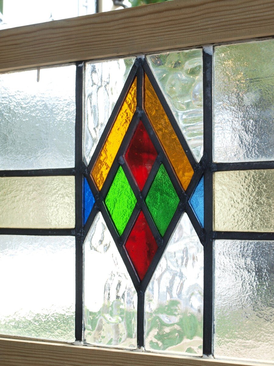 ガラスのシワや気泡、経年による細かな表面キズ、薄いガラスの剥がれ(チップ)、ケーム(鉛線)の色落ち、木枠の欠けや塗装の剥げ等については、アンティークならではの味わいとして現状のまま販売しておりますので、予めご了承ください。