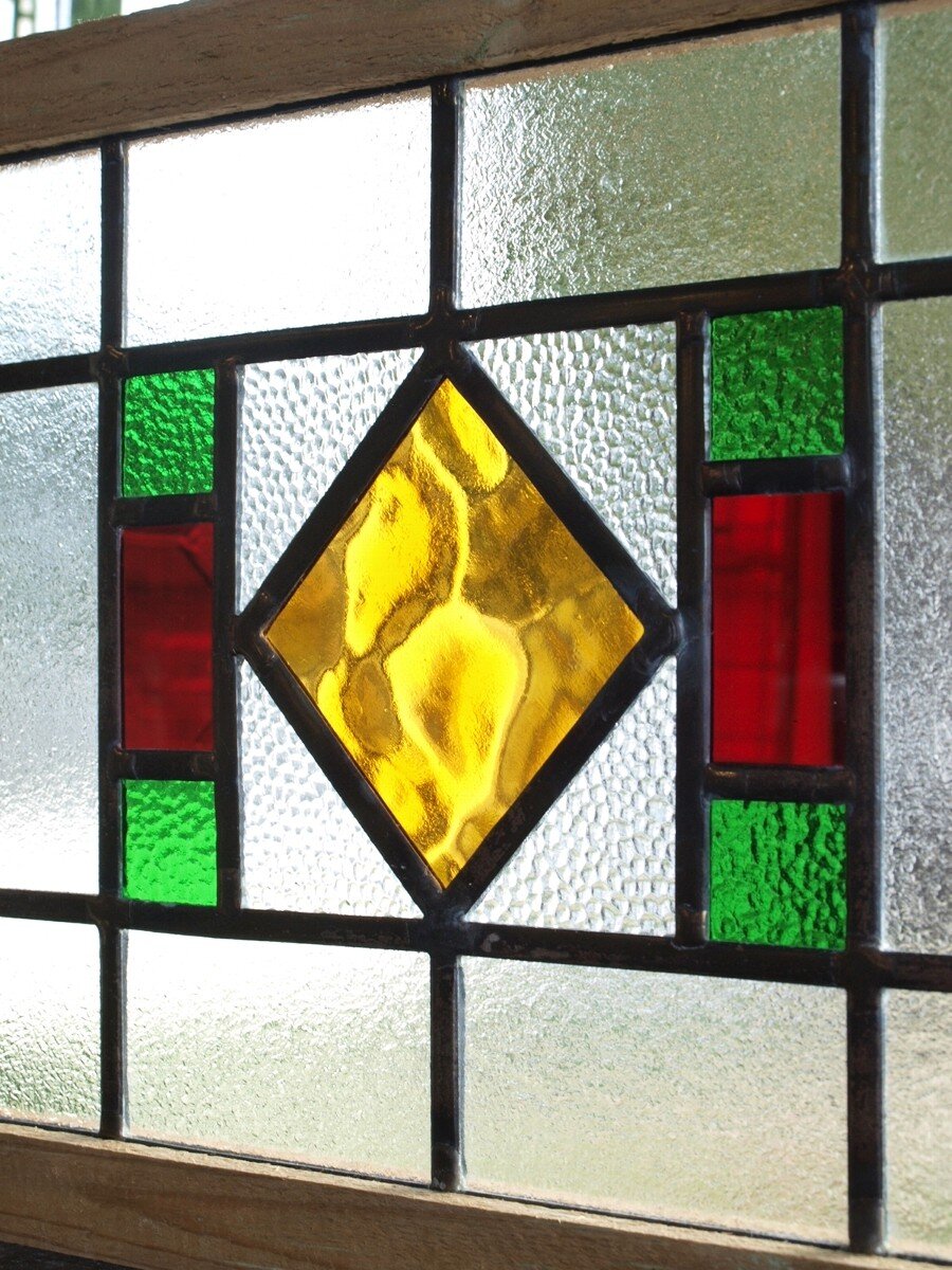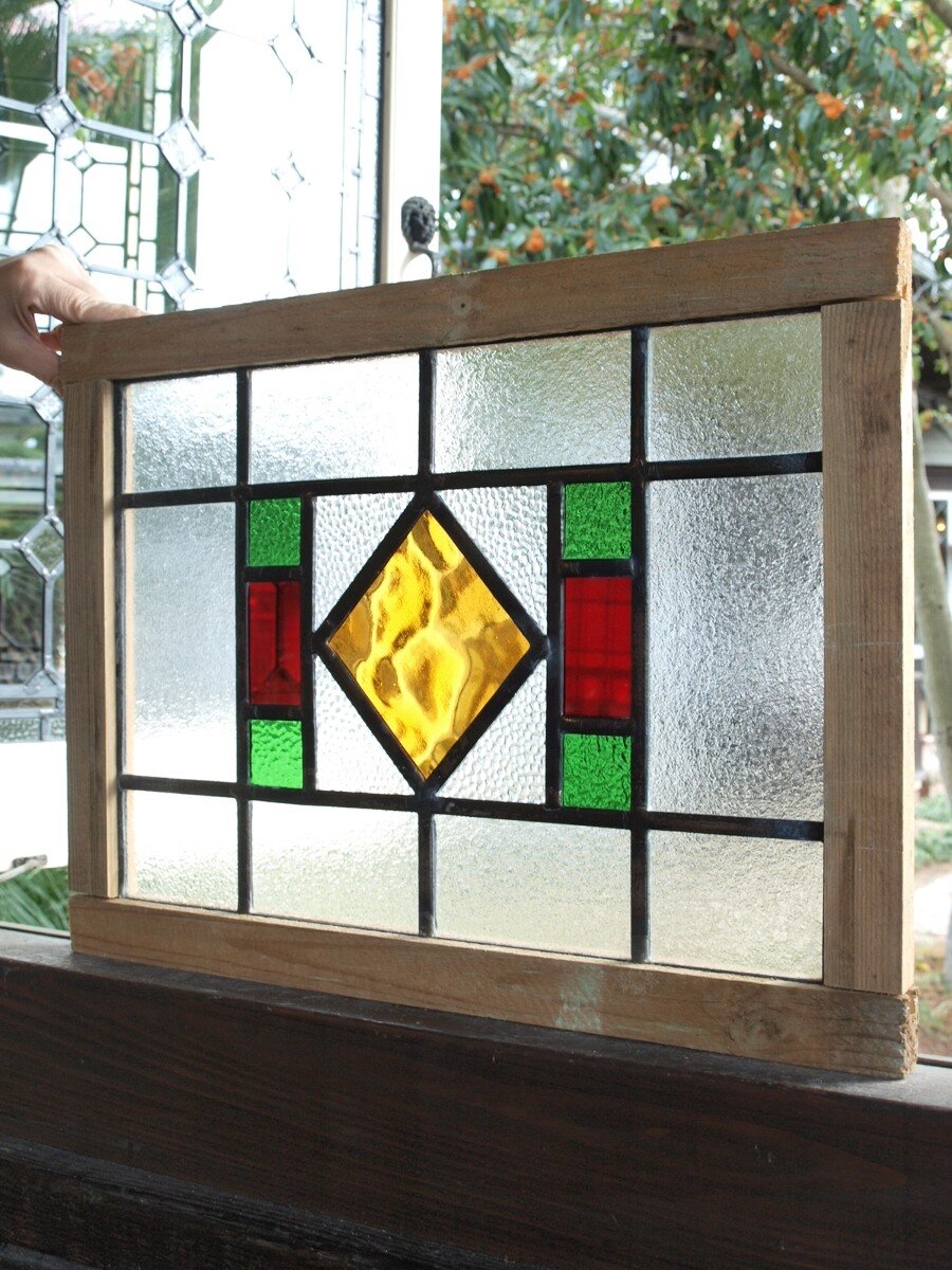 ガラスのシワや気泡、経年による細かな表面キズ、薄いガラスの剥がれ(チップ)、ケーム(鉛線)の色落ち、木枠の欠けや塗装の剥げ等については、アンティークならではの味わいとして現状のまま販売しておりますので、予めご了承ください。