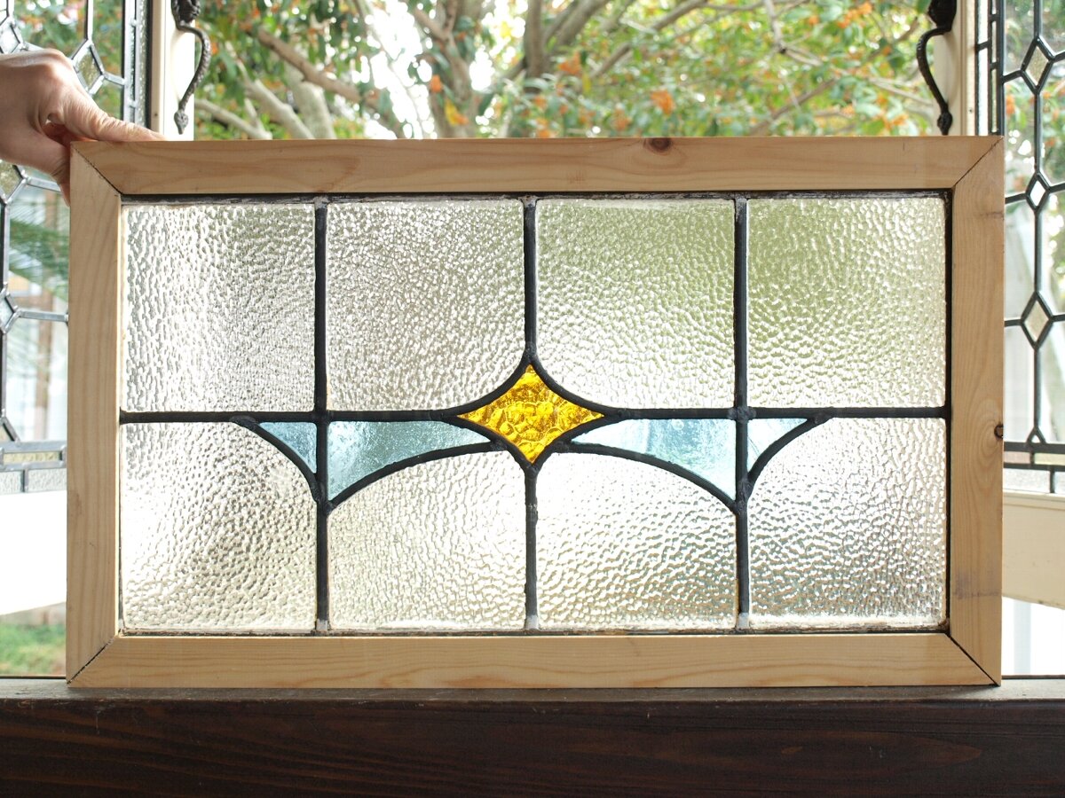 ガラスのシワや気泡、経年による細かな表面キズ、薄いガラスの剥がれ(チップ)、ケーム(鉛線)の色落ち、木枠の欠けや塗装の剥げ等については、アンティークならではの味わいとして現状のまま販売しておりますので、予めご了承ください。