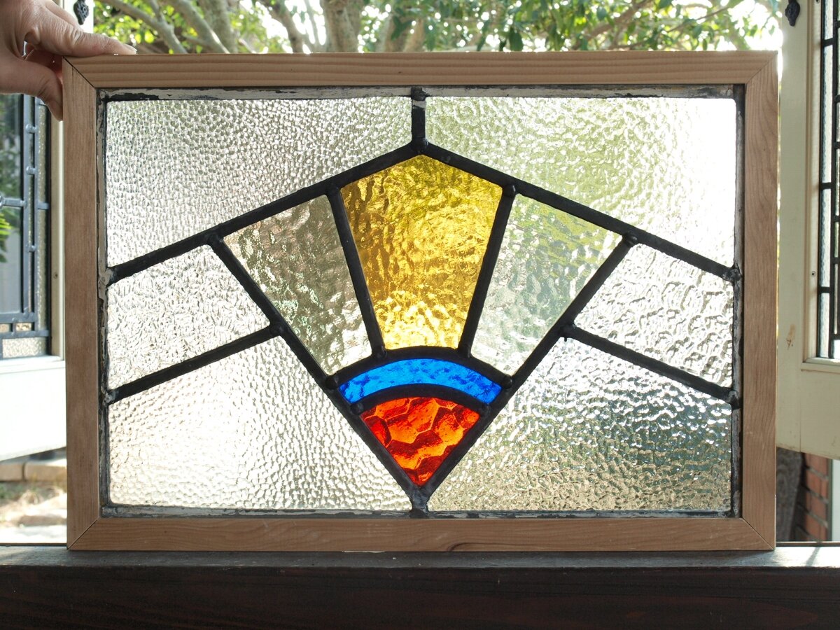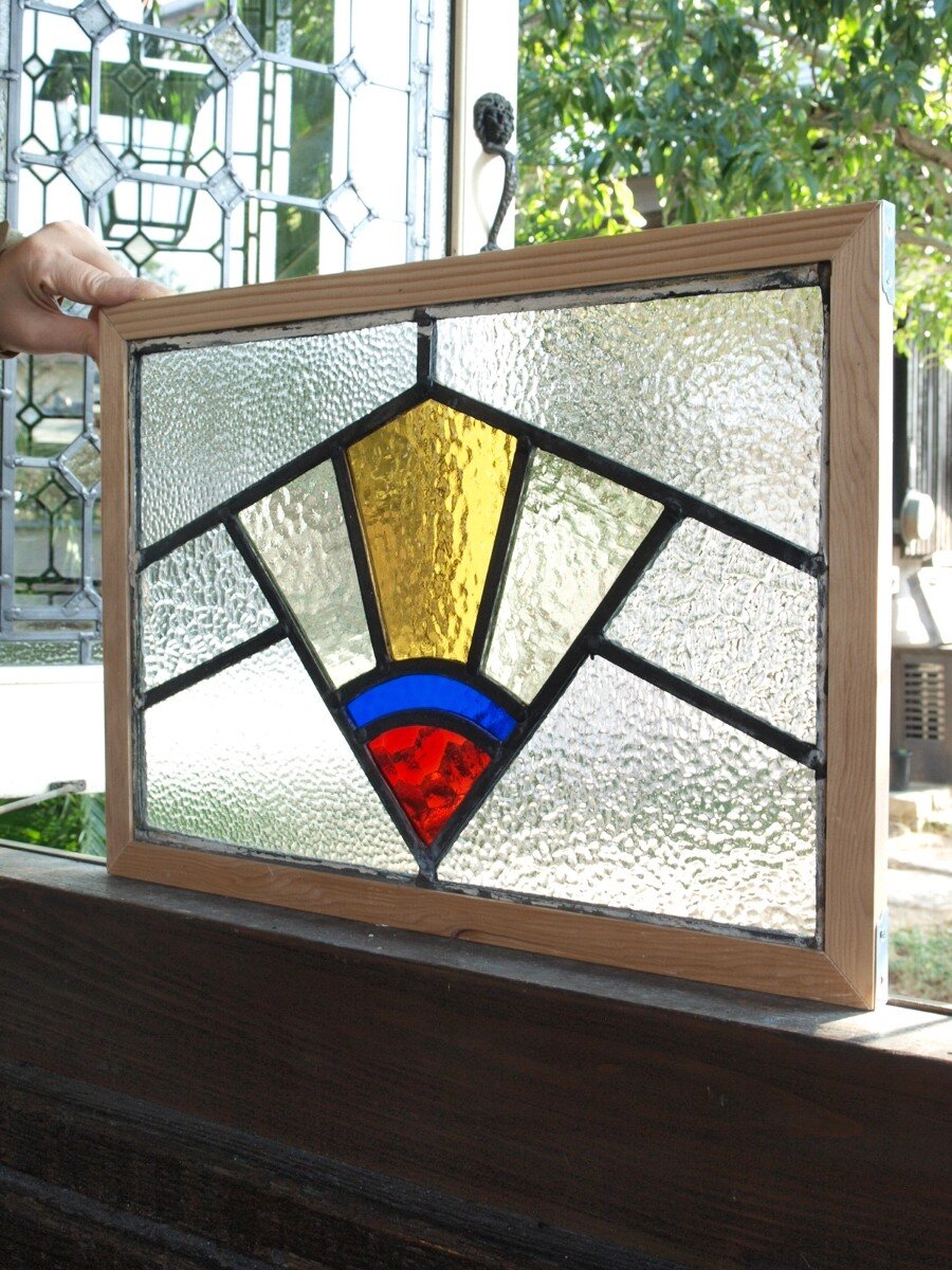 ガラスのシワや気泡、経年による細かな表面キズ、薄いガラスの剥がれ(チップ)、ケーム(鉛線)の色落ち、木枠の欠けや塗装の剥げ等については、アンティークならではの味わいとして現状のまま販売しておりますので、予めご了承ください。