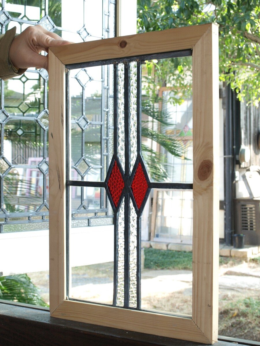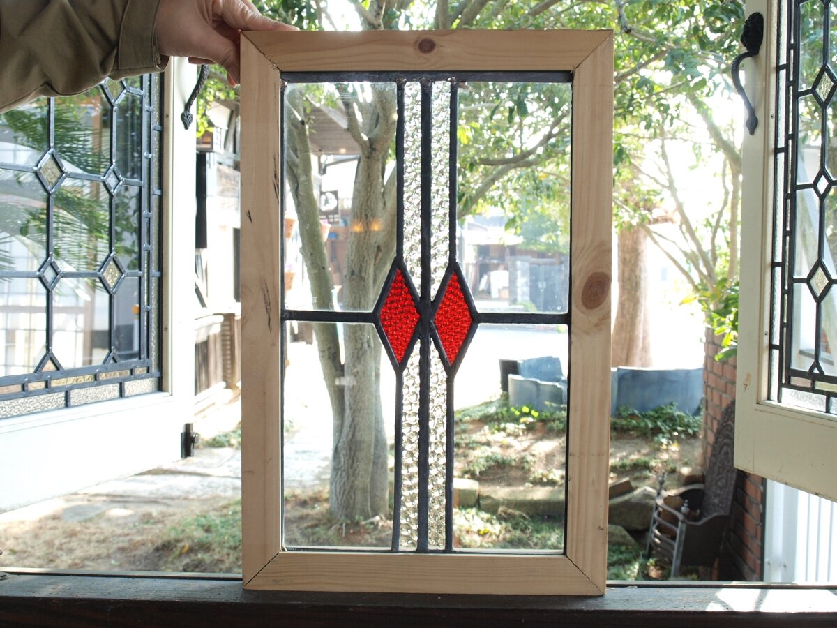 ガラスのシワや気泡、経年による細かな表面キズ、薄いガラスの剥がれ(チップ)、ケーム(鉛線)の色落ち、木枠の欠けや塗装の剥げ等については、アンティークならではの味わいとして現状のまま販売しておりますので、予めご了承ください。