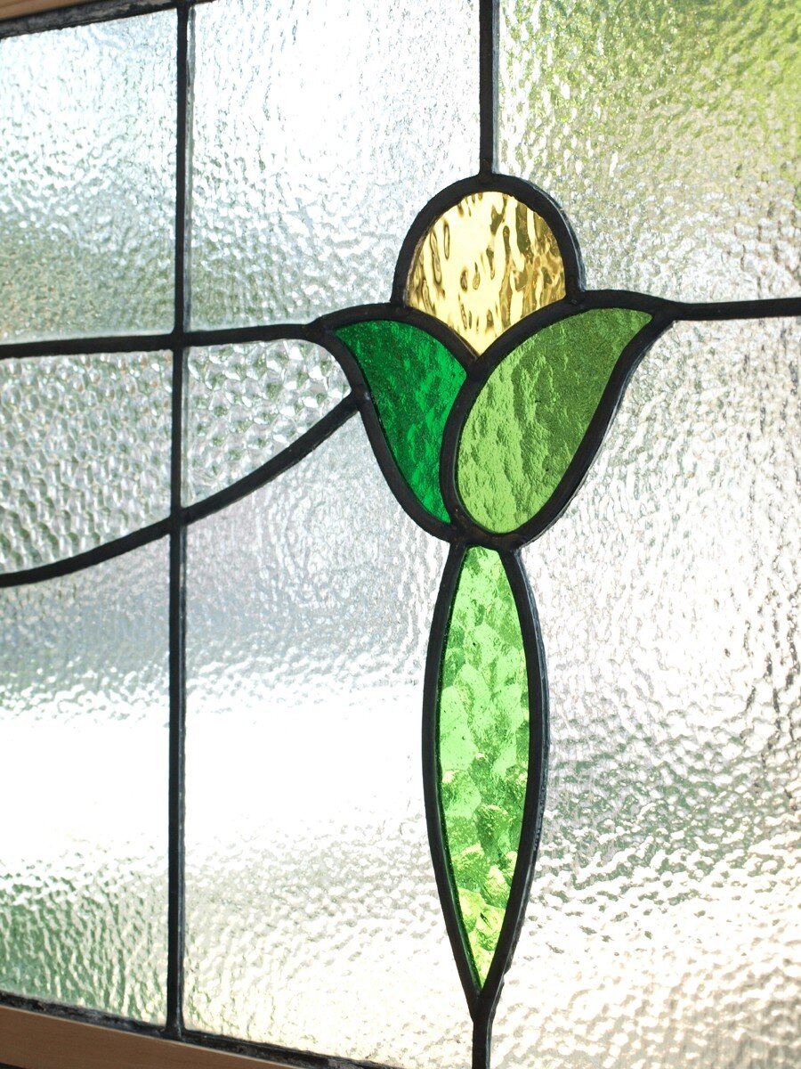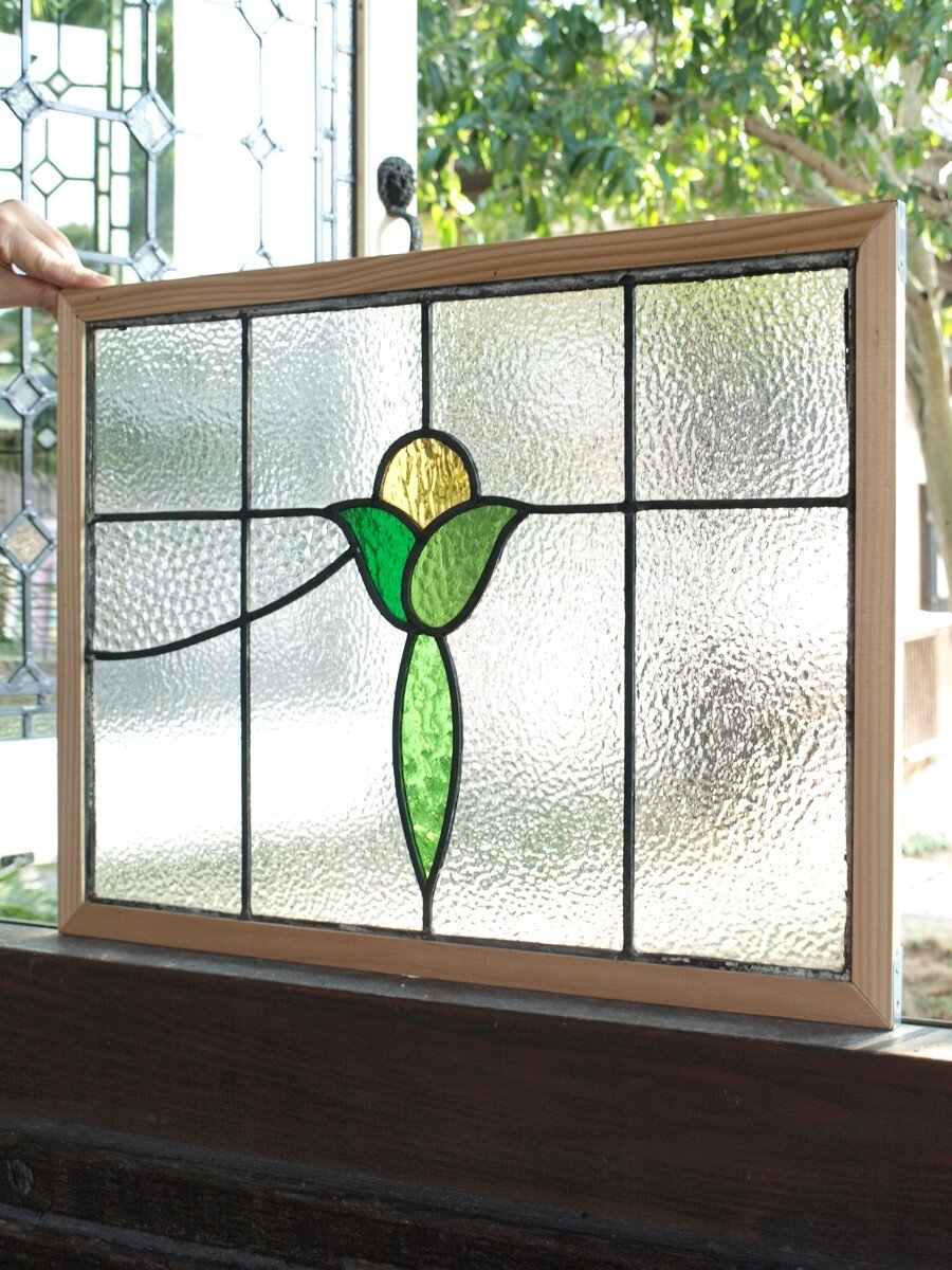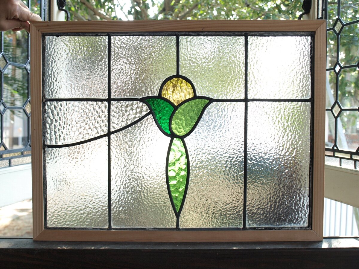 ガラスのシワや気泡、経年による細かな表面キズ、薄いガラスの剥がれ(チップ)、ケーム(鉛線)の色落ち、木枠の欠けや塗装の剥げ等については、アンティークならではの味わいとして現状のまま販売しておりますので、予めご了承ください。