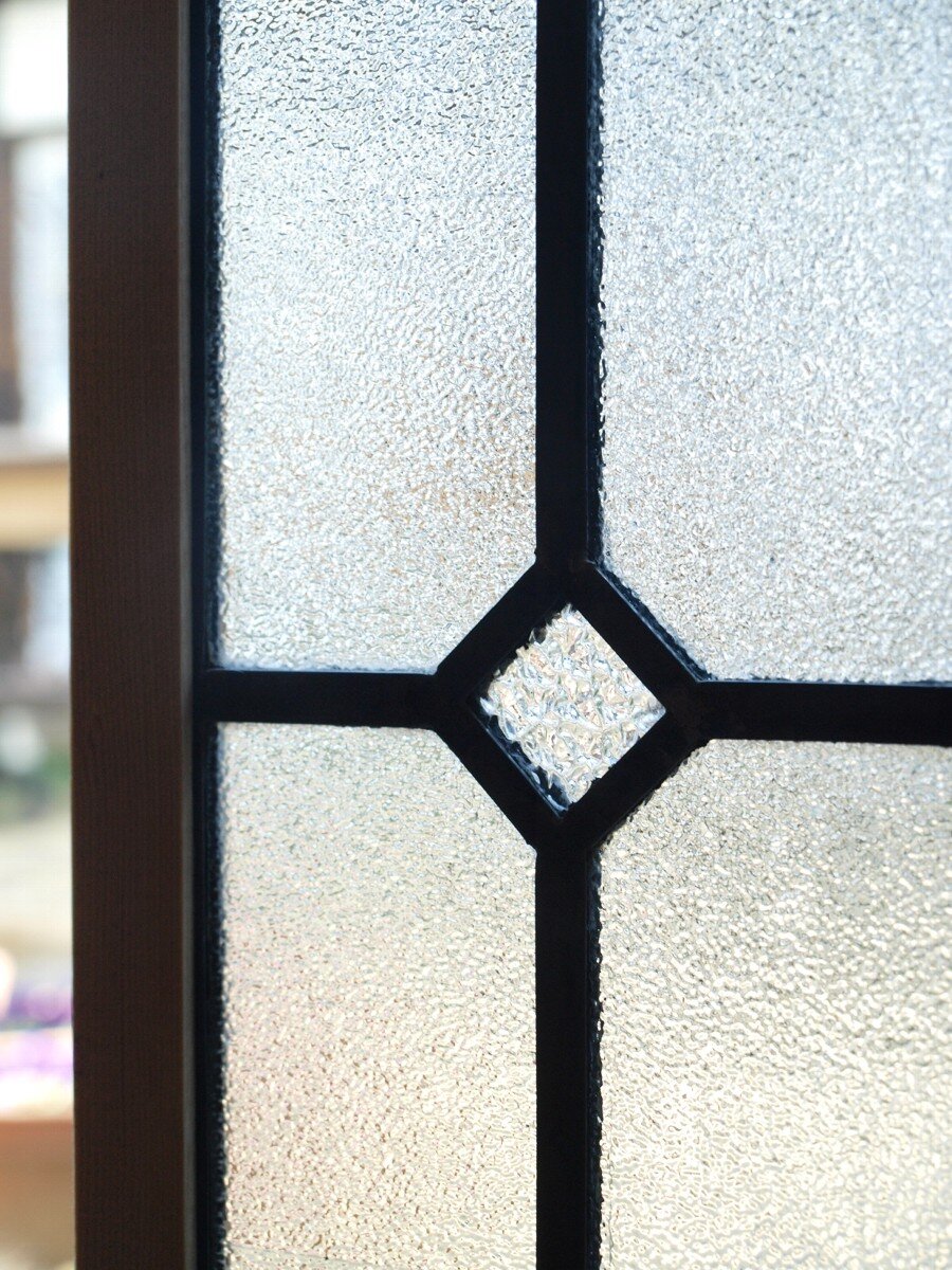 ガラスのシワや気泡、経年による細かな表面キズ、薄いガラスの剥がれ(チップ)、ケーム(鉛線)の色落ち、木枠の欠けや塗装の剥げ等については、アンティークならではの味わいとして現状のまま販売しておりますので、予めご了承ください。