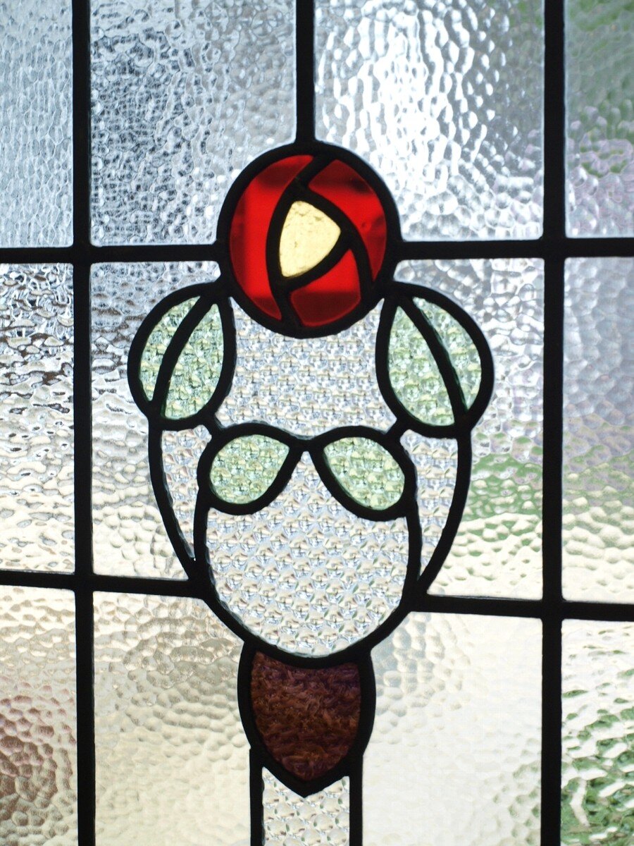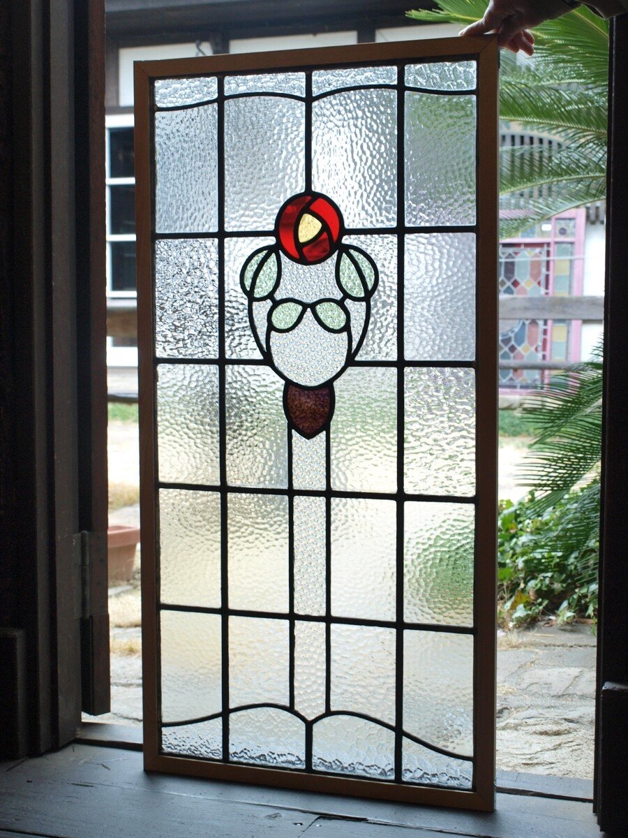 ガラスのシワや気泡、経年による細かな表面キズ、薄いガラスの剥がれ(チップ)、ケーム(鉛線)の色落ち、木枠の欠けや塗装の剥げ等については、アンティークならではの味わいとして現状のまま販売しておりますので、予めご了承ください。