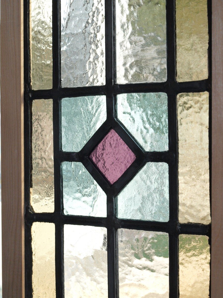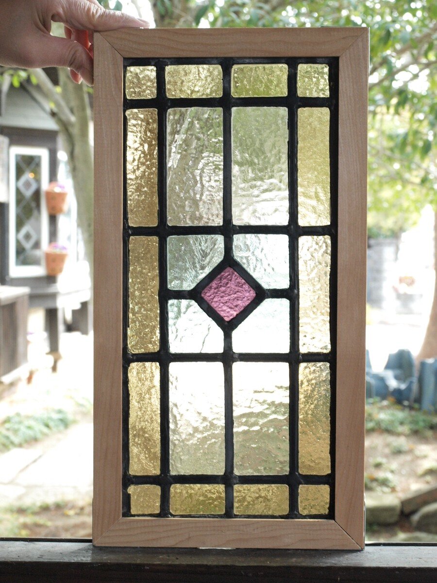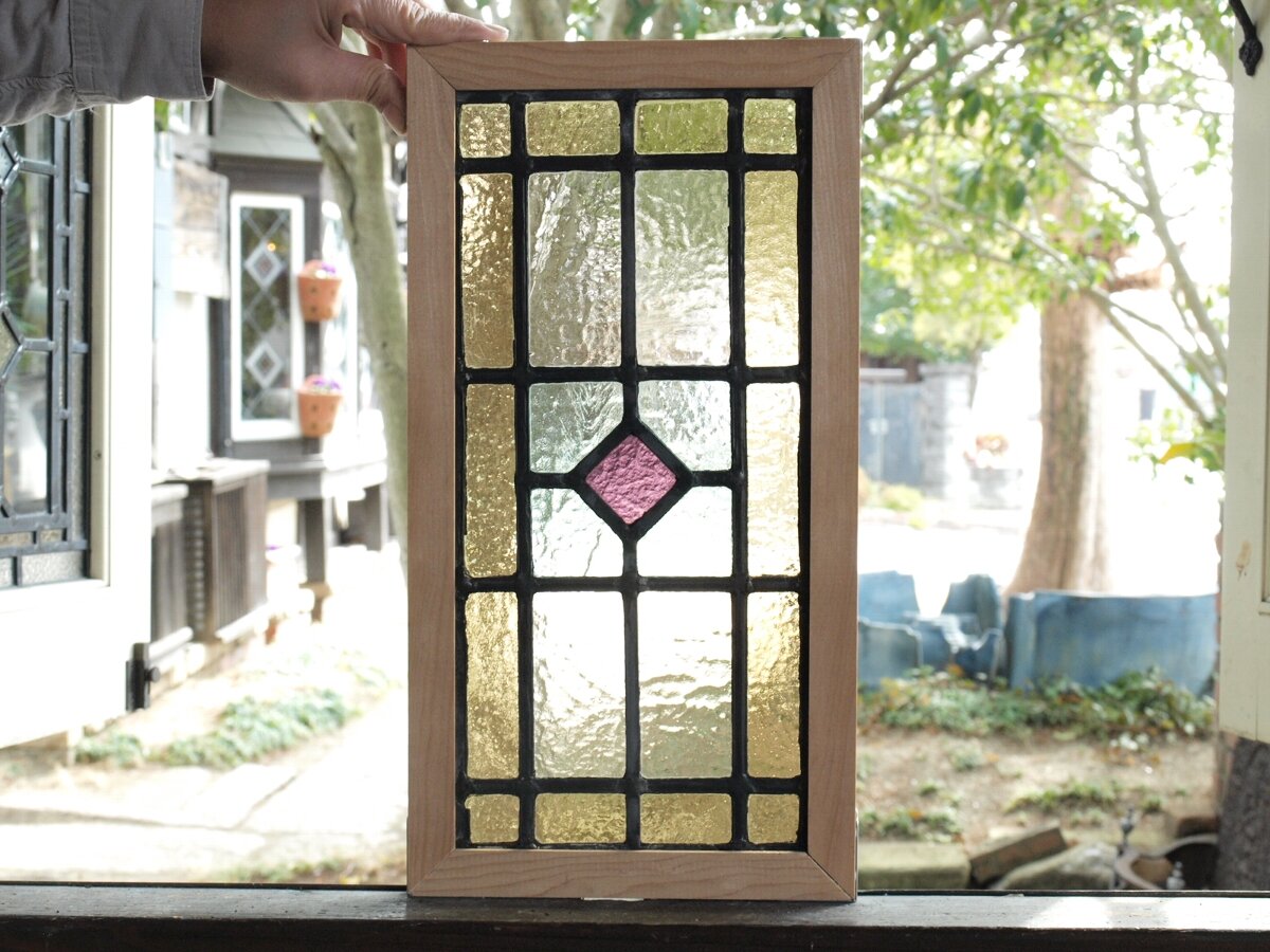 ガラスのシワや気泡、経年による細かな表面キズ、薄いガラスの剥がれ(チップ)、ケーム(鉛線)の色落ち、木枠の欠けや塗装の剥げ等については、アンティークならではの味わいとして現状のまま販売しておりますので、予めご了承ください。