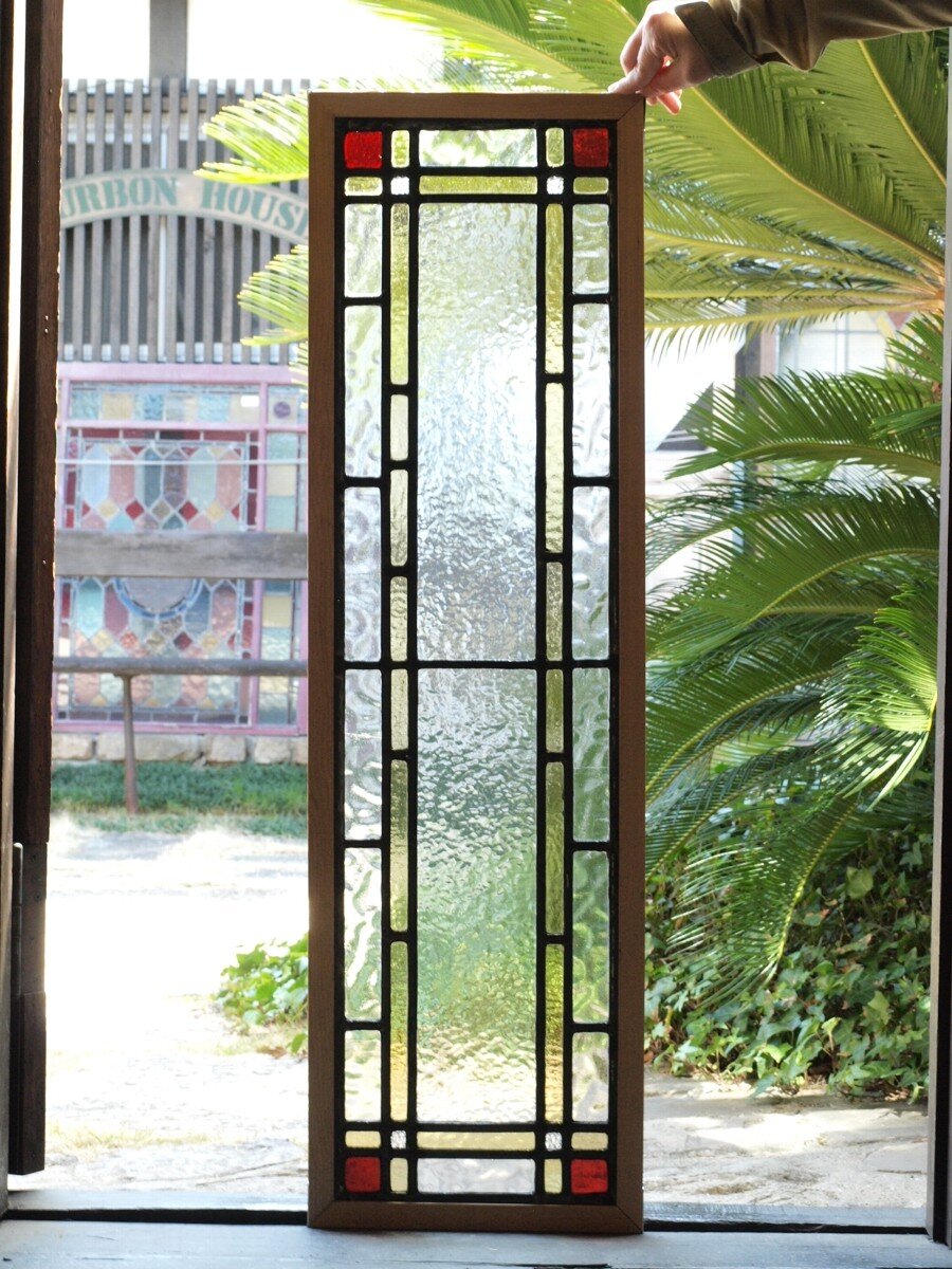 ガラスのシワや気泡、経年による細かな表面キズ、薄いガラスの剥がれ(チップ)、ケーム(鉛線)の色落ち、木枠の欠けや塗装の剥げ等については、アンティークならではの味わいとして現状のまま販売しておりますので、予めご了承ください。