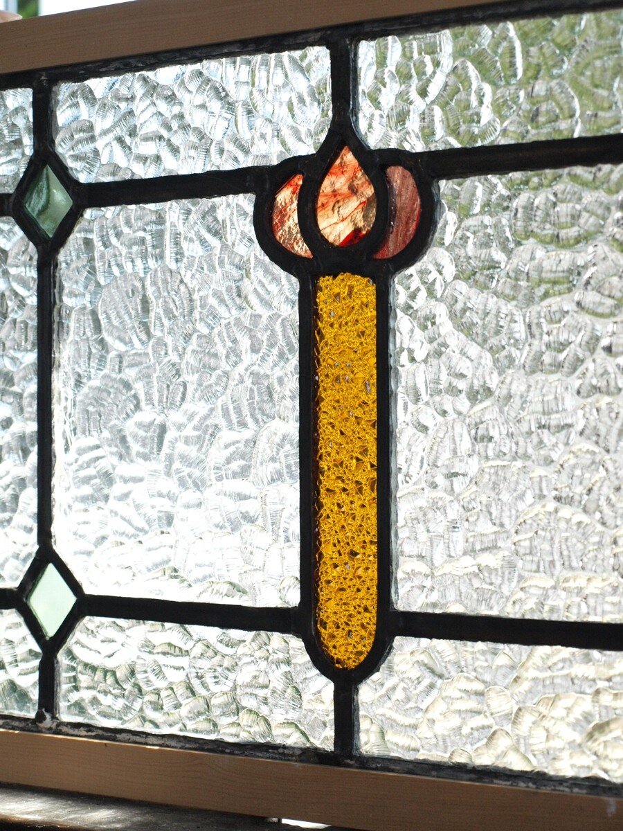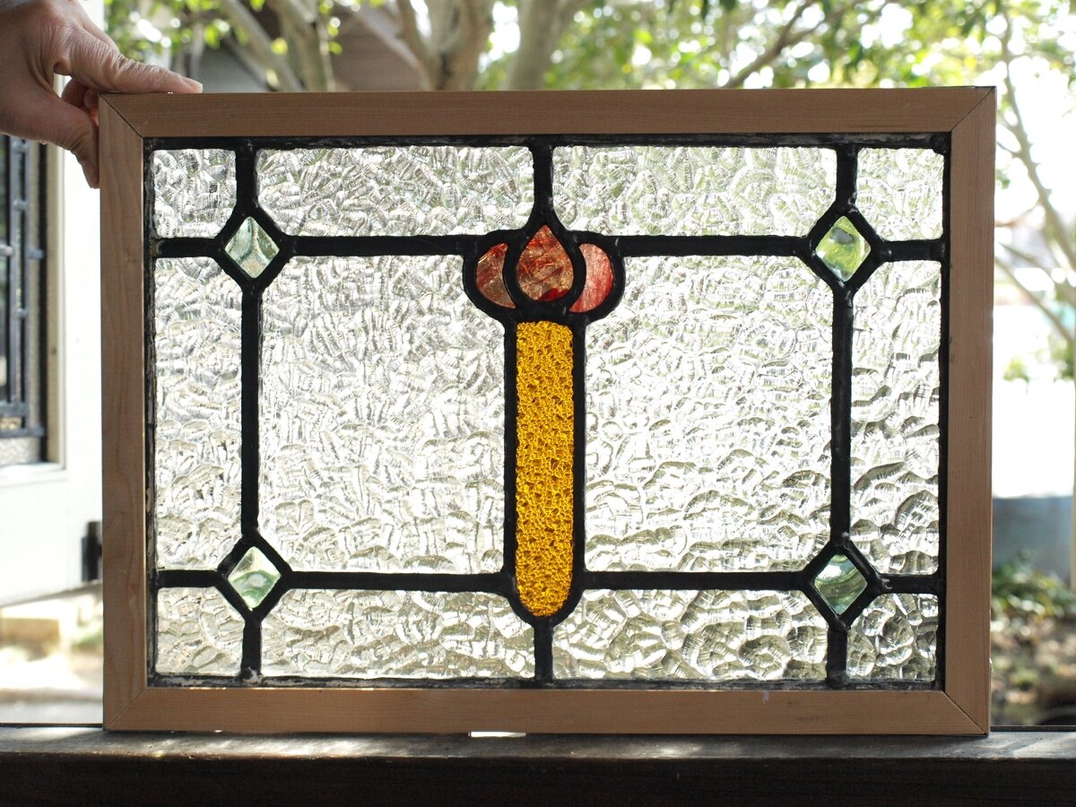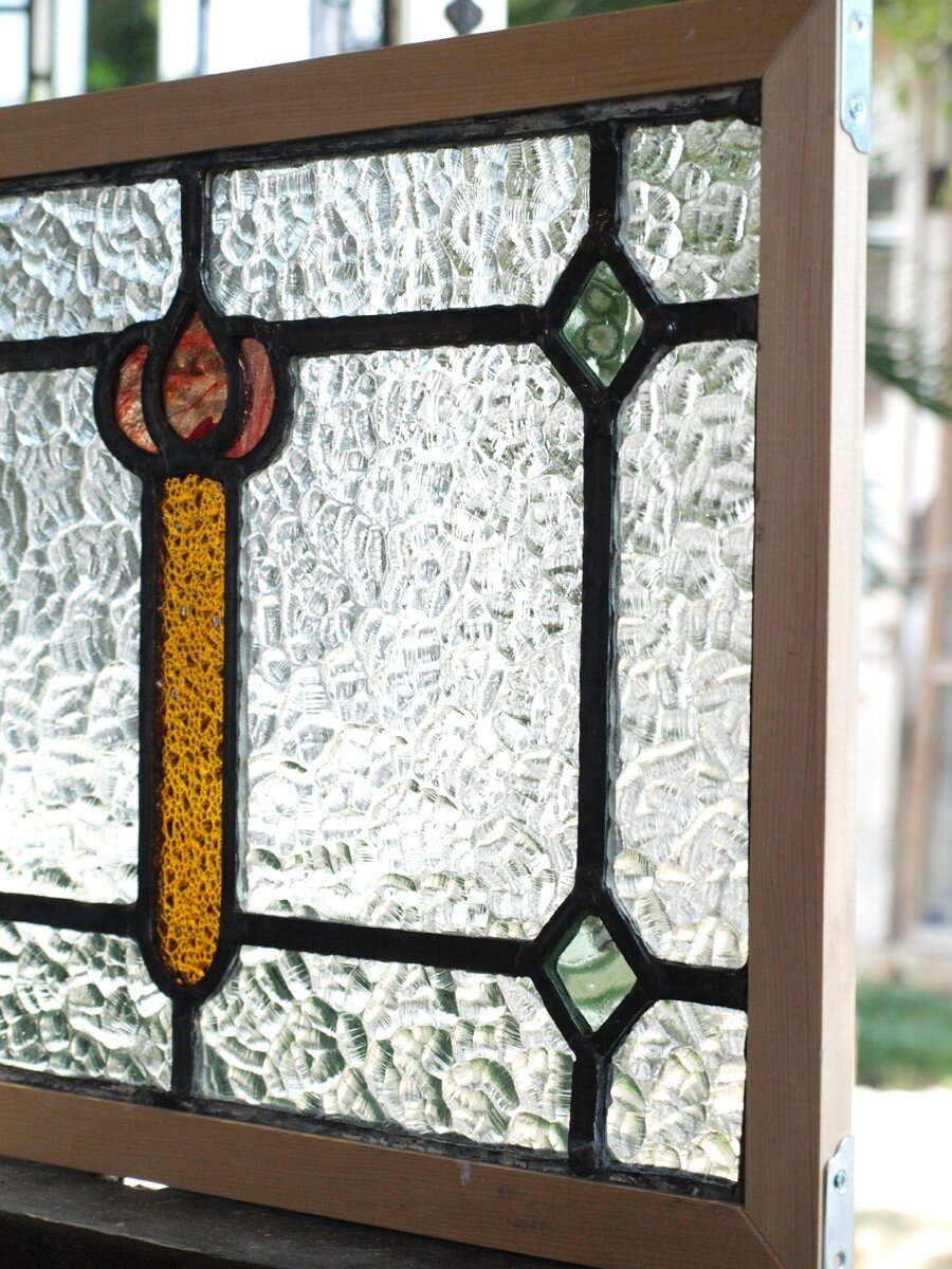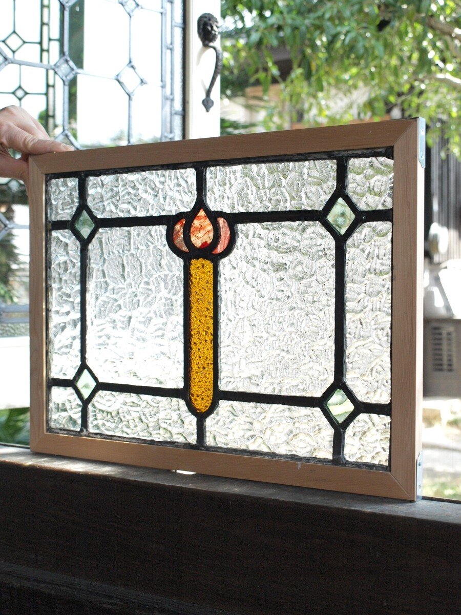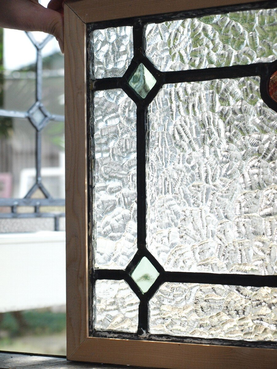 ガラスのシワや気泡、経年による細かな表面キズ、薄いガラスの剥がれ(チップ)、ケーム(鉛線)の色落ち、木枠の欠けや塗装の剥げ等については、アンティークならではの味わいとして現状のまま販売しておりますので、予めご了承ください。