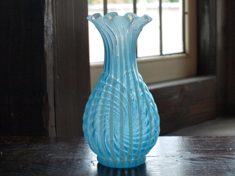 やさしい色合いのアンティークグラスウェア。デカンターやボウル、蓋付きポットなど、季節感を演出したいテーブルコーディネートにもお勧めのアイテムです。ガラスならではの清涼感と美しさを楽しんでくださいね。