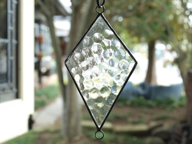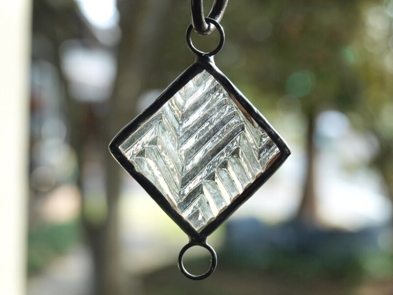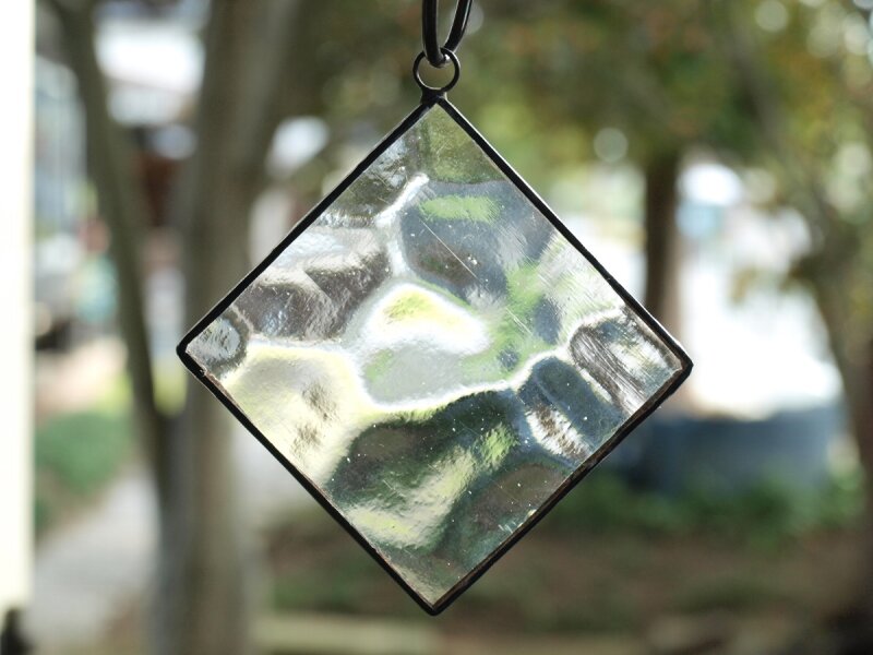 アンティークガラスとは、機械でガラスが製造される以前の、円筒法と呼ばれた製造法で作られた板ガラスの総称です。円筒法で作られたアンティークガラスには特有の気泡やシワがあり、職人の手加減でガラスの表情が変わるので「職人 の指紋」などとも呼ばれています。同じものが一つと無いその気泡やシワが光を受け、柔らかな大変美しい陰影が生まれます。