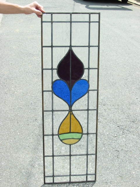 加工デザインです。 FIX窓の開口部寸法に合わせて、元のステンドグラスの左右をカット、上下にガラスを足して仕上げました。