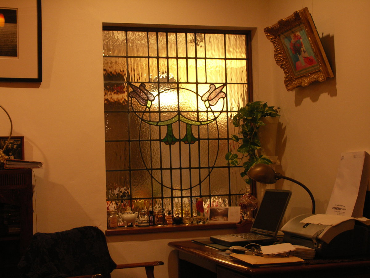 同じ柄のステンドグラスを4枚窓に配置しています。様々なアイデアで、独自の空間を創りだします。