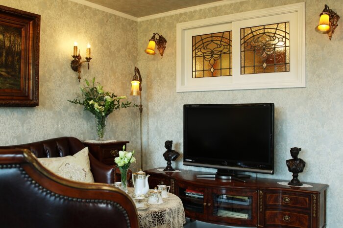 静岡県のA邸です。マンションのリフォームでご希望のサイズに加工したステンドグラスをお部屋の窓に取り付けました。