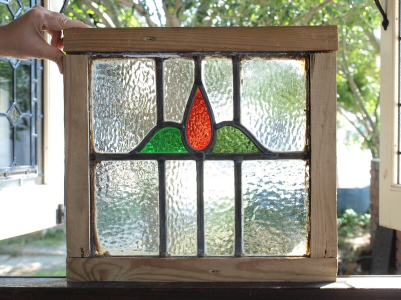 元のアンティークステンドグラスです。欄間のガラスと障子枠の隙間にはめ込みました。