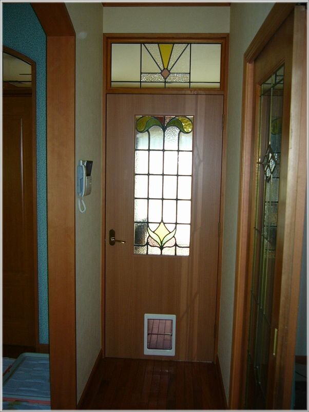 既存のサッシ窓の上部にステンドグラスを入れました。