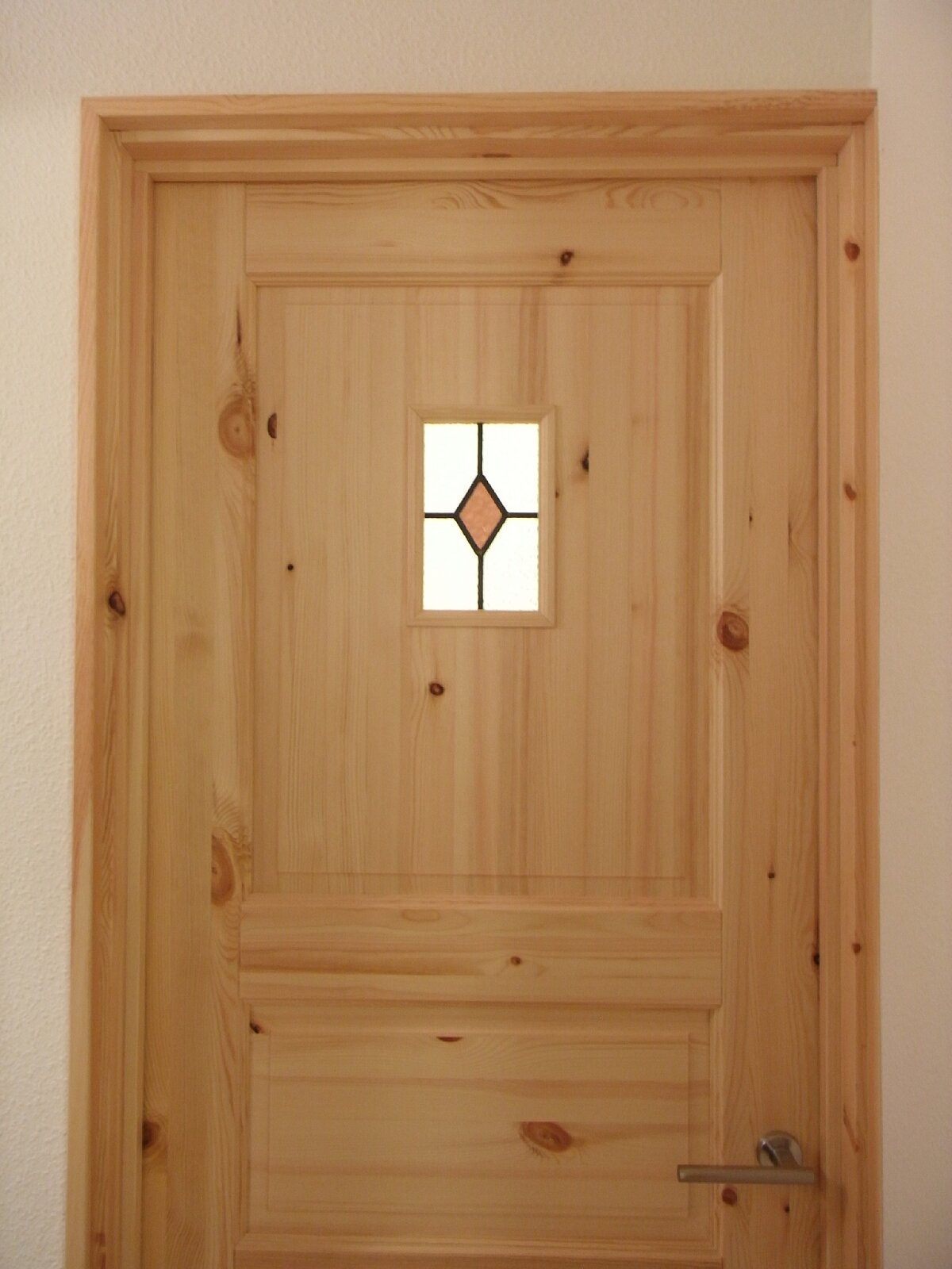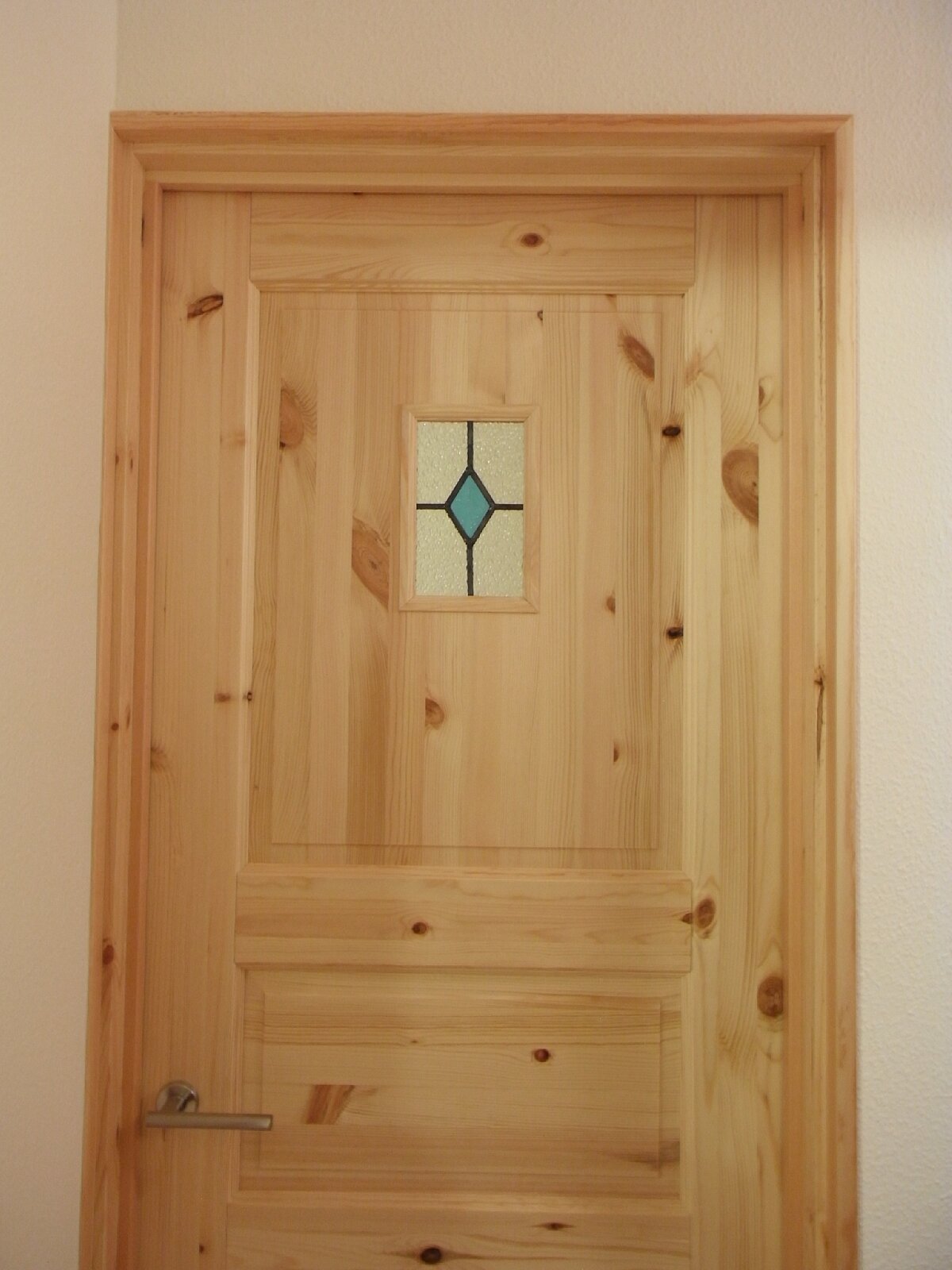 隣り合うドアに色違いのステンドグラスを取り付けました。赤いステンドグラスは女の子、青いステンドグラスは男の子の子供部屋だそうです!