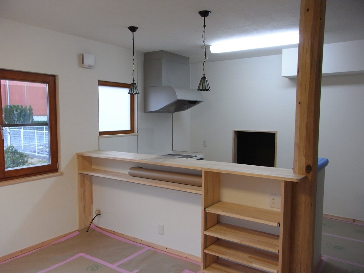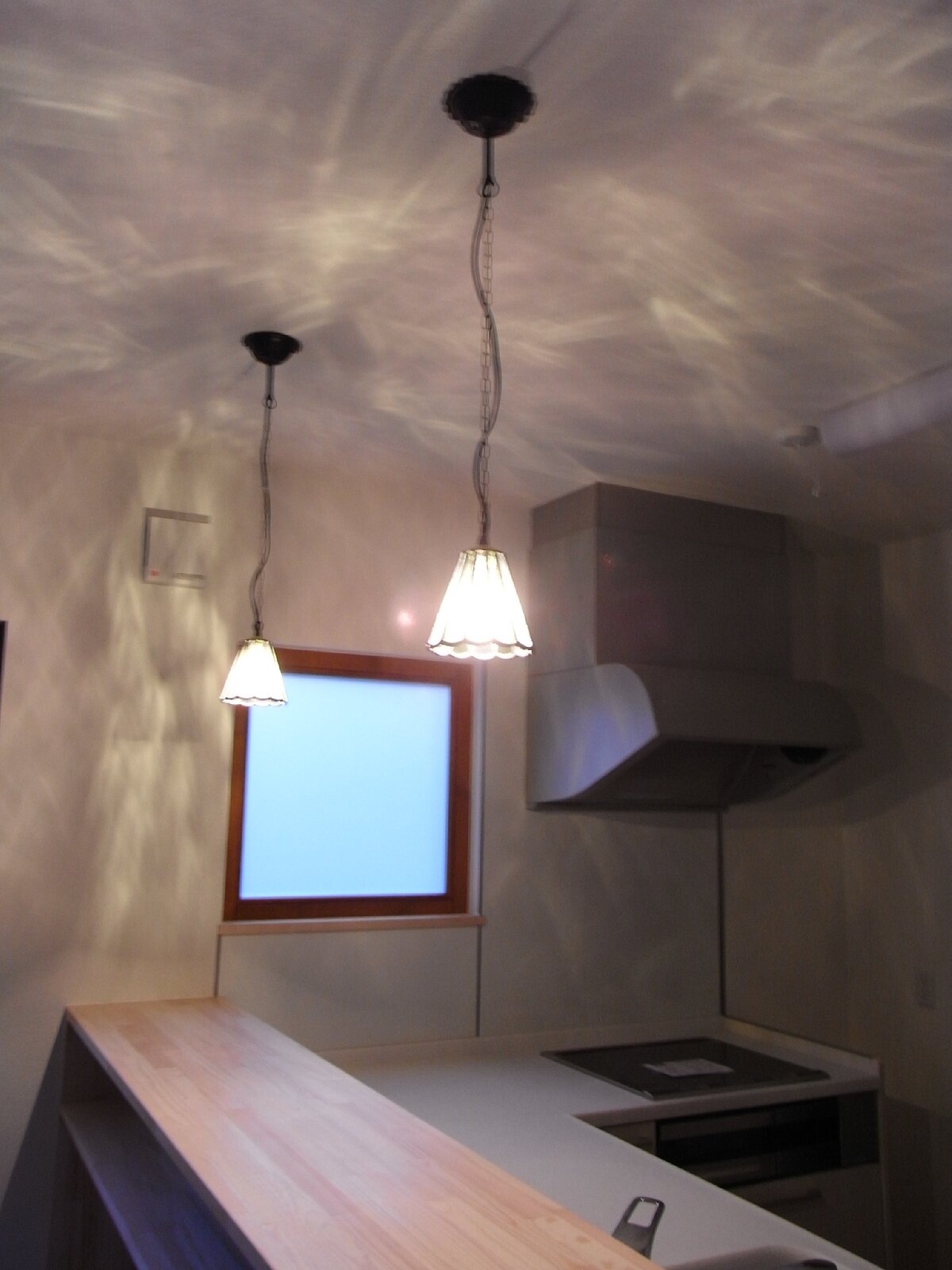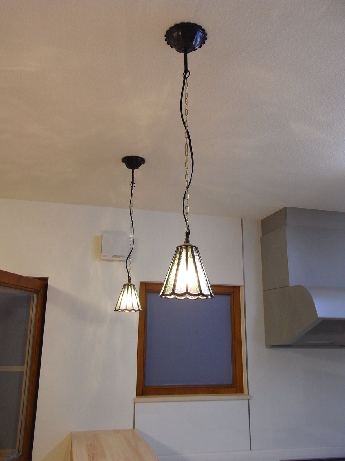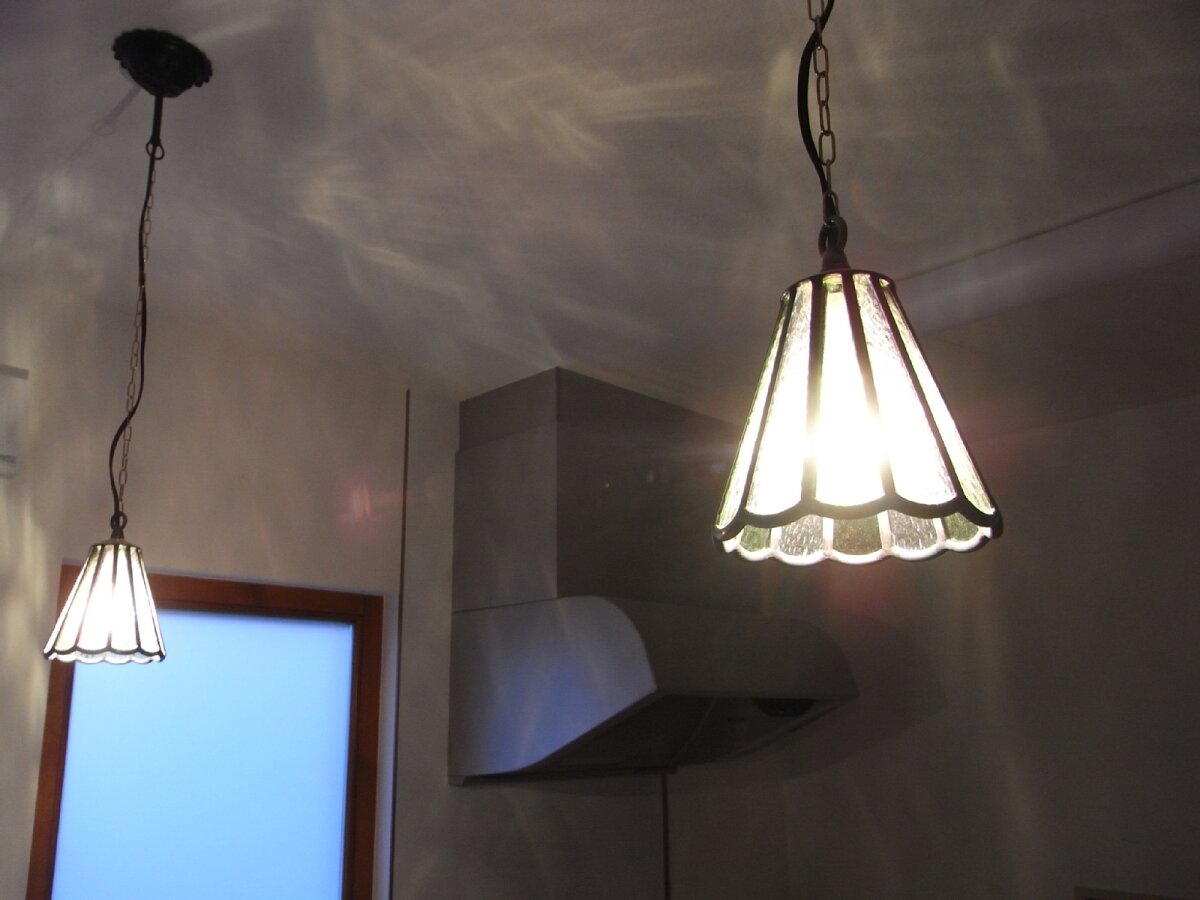 キッチンにはおそろいのステンドランプを。