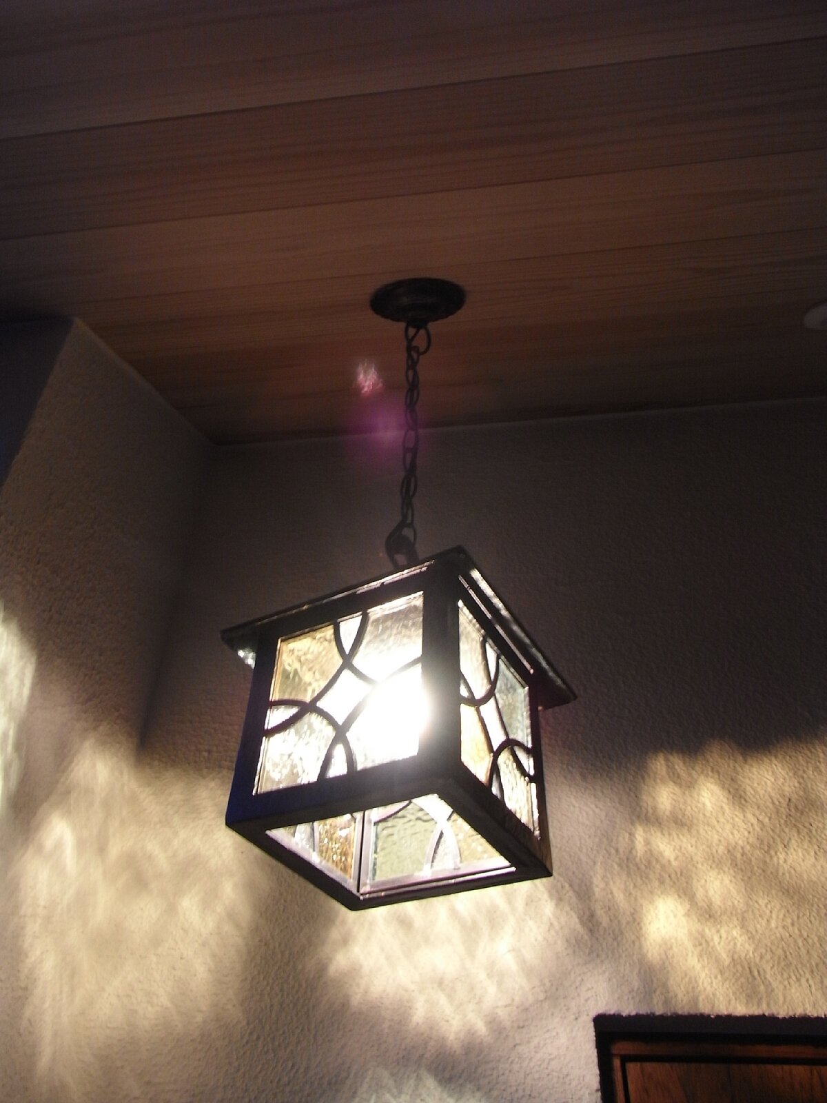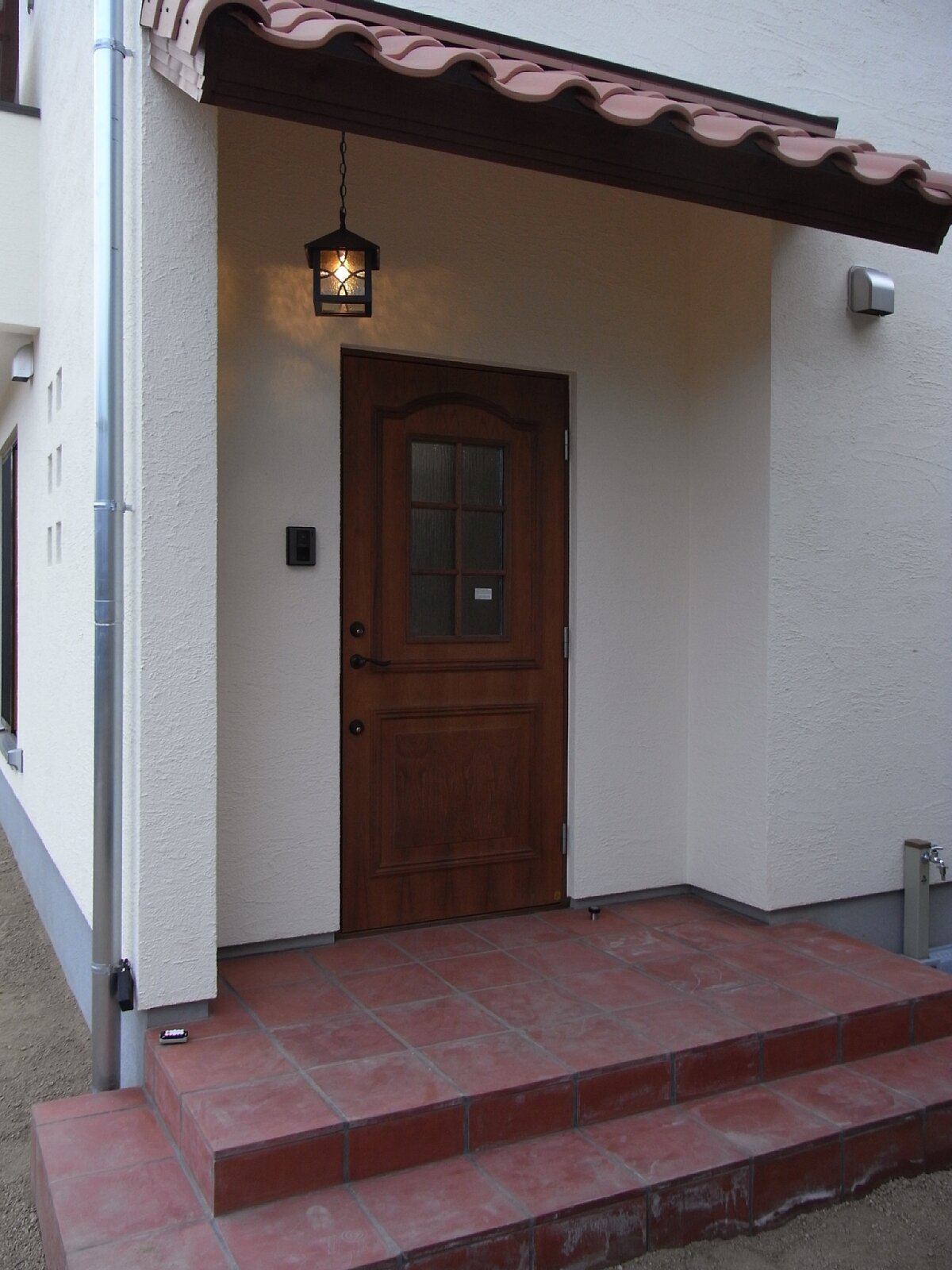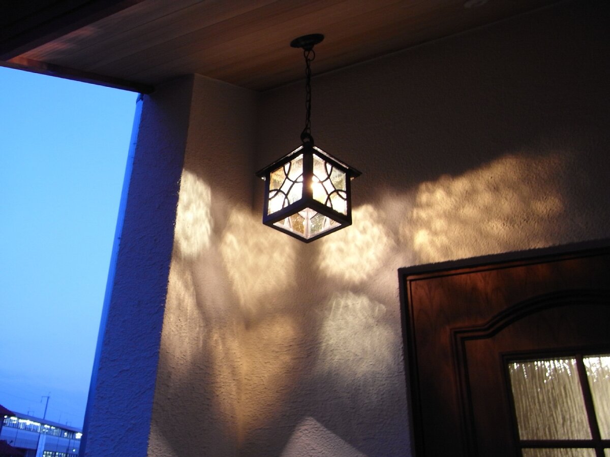 玄関にはステンドランプが灯ります。