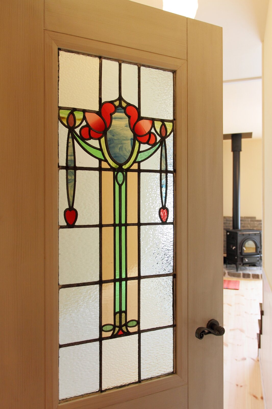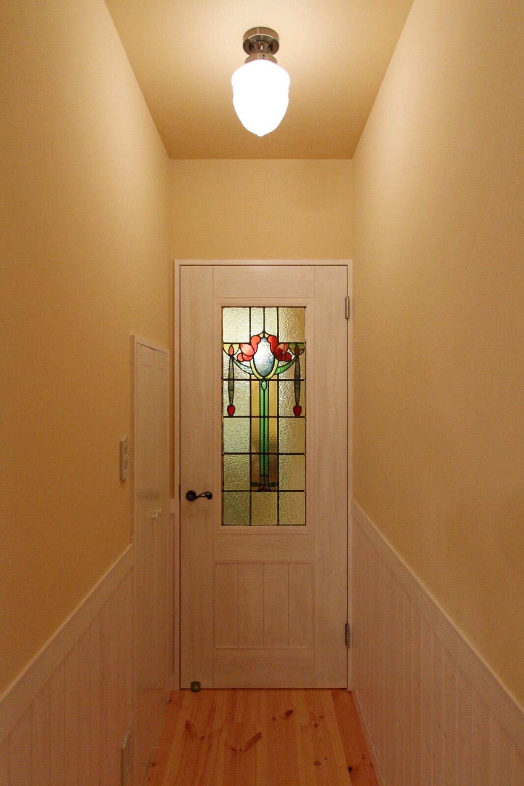 お部屋のドアに取り付けました。お部屋の灯りが、ステンドグラスをより華やかに見せてくれます。