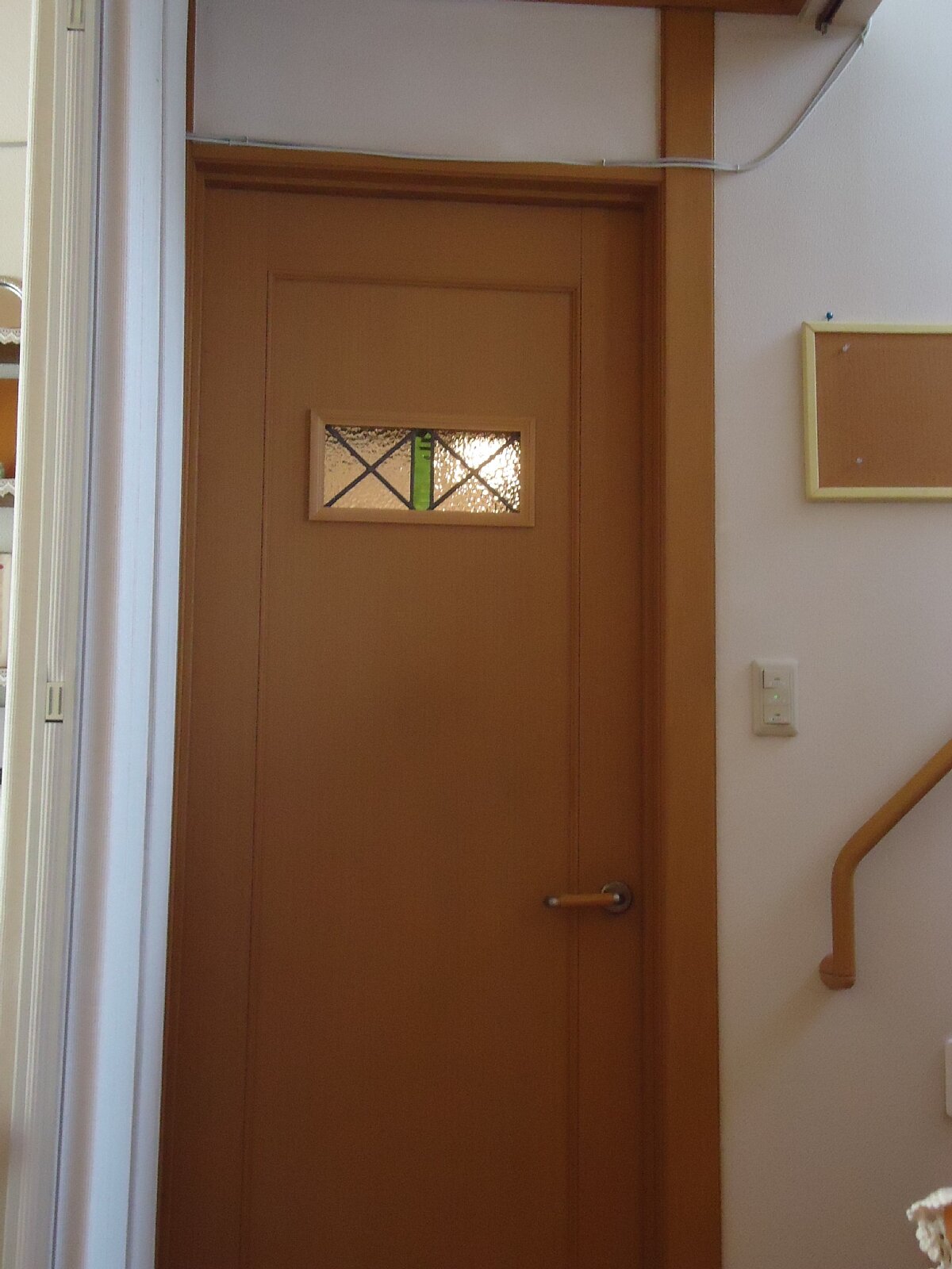 既存のドアをくりぬいて、はめ込みました。小さなサイズのステンドグラスから差し込む光がお部屋の雰囲気も明るくしています。