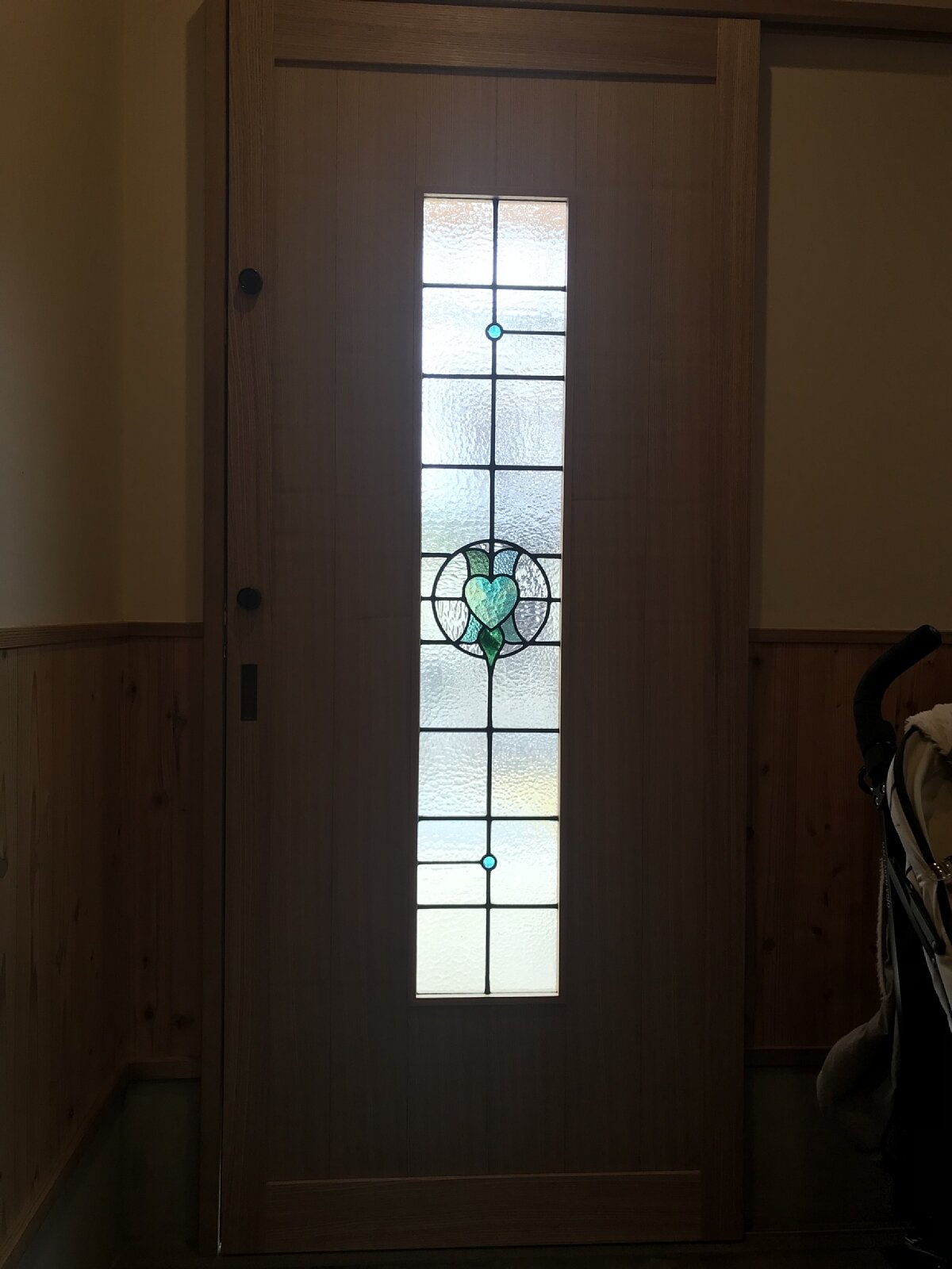 いただいたステンドグラスは、私たちのおうちのまさに顔で、とってもいい感じです。2枚ともお気に入りの扉になりました。本当にありがとうございました!!!