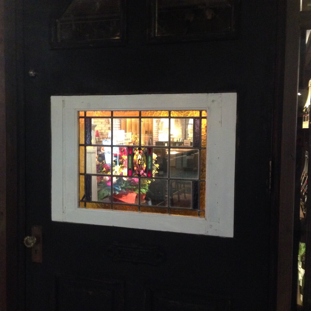 香川県高松市の贔屓屋グループのお店、wine dining Haluです。元のアンティークステンドグラスです。